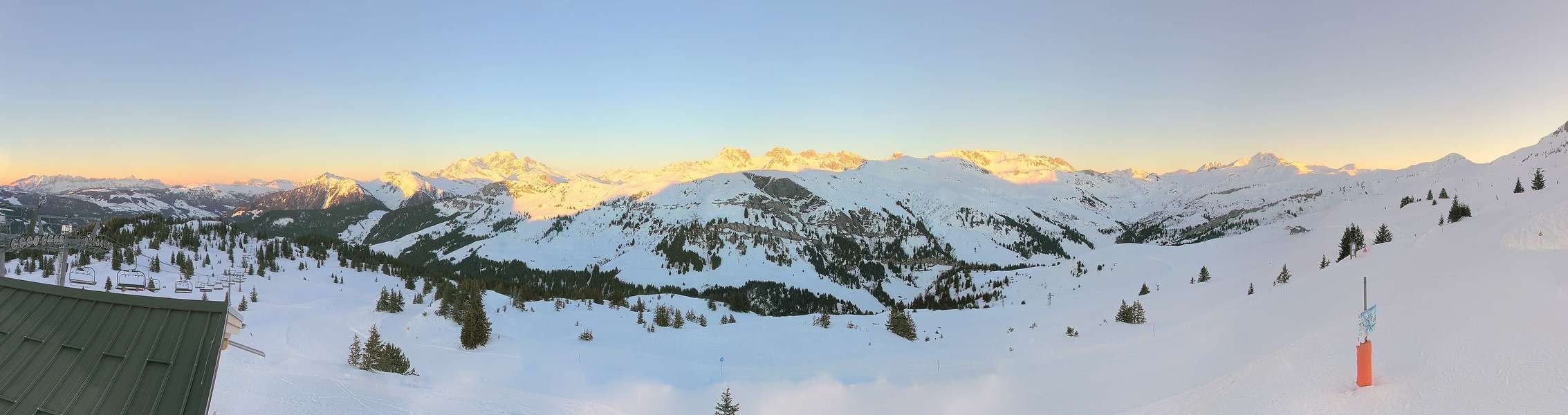 Panoramic view from the highest point of the ski area Arêches Beaufort at the top station of the Forclaz ski lift.