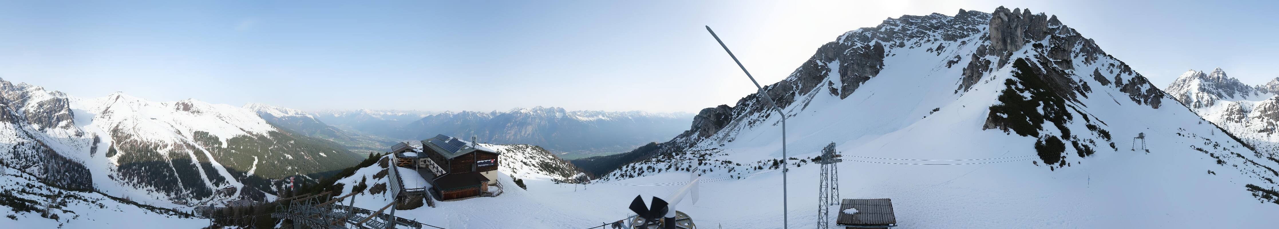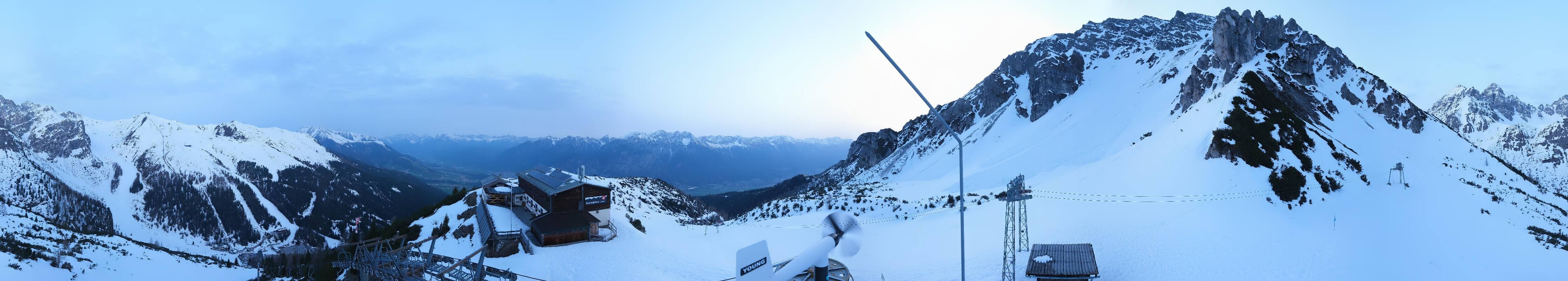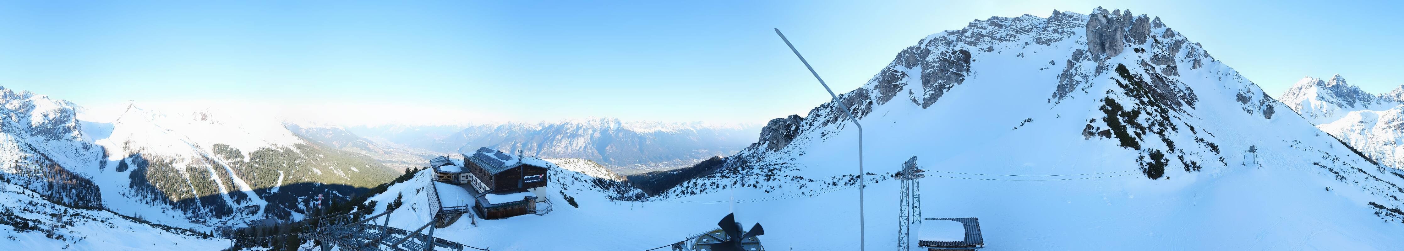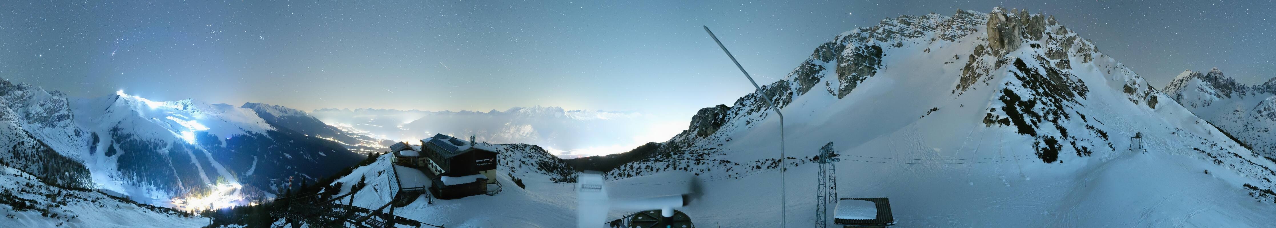 The webcam is located at the top station of the Birgitzköpfl chairlift next to the Birgitzköpflhaus in the ski resort Axamer Lizum not far from Innsbruck. You can also see the Götzner Grube T-bar lift.