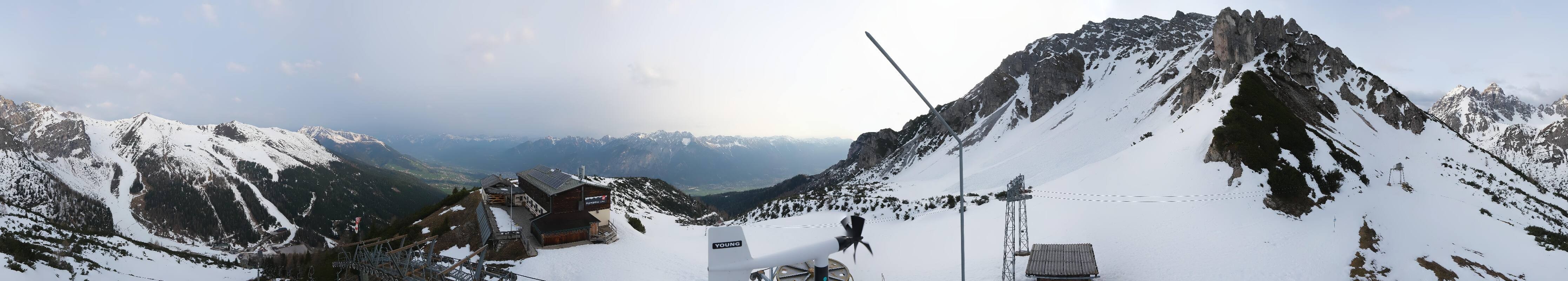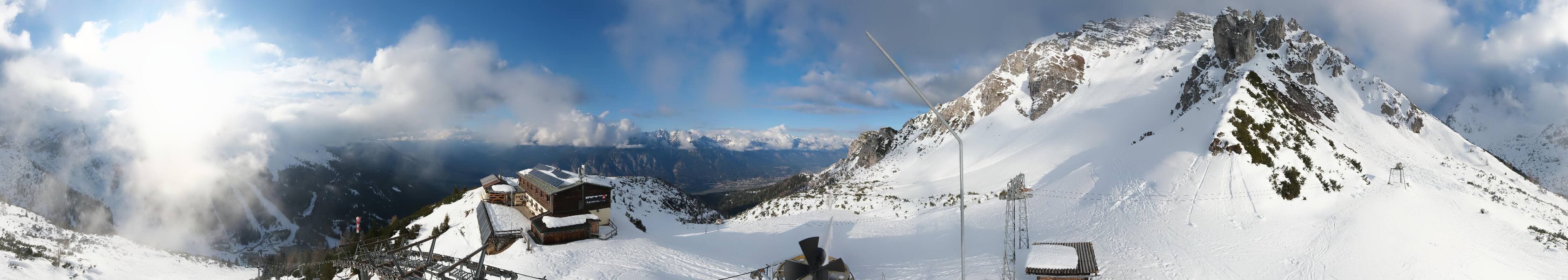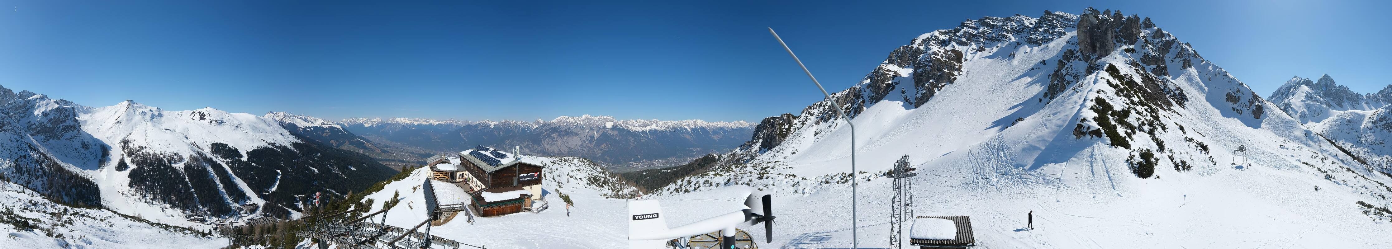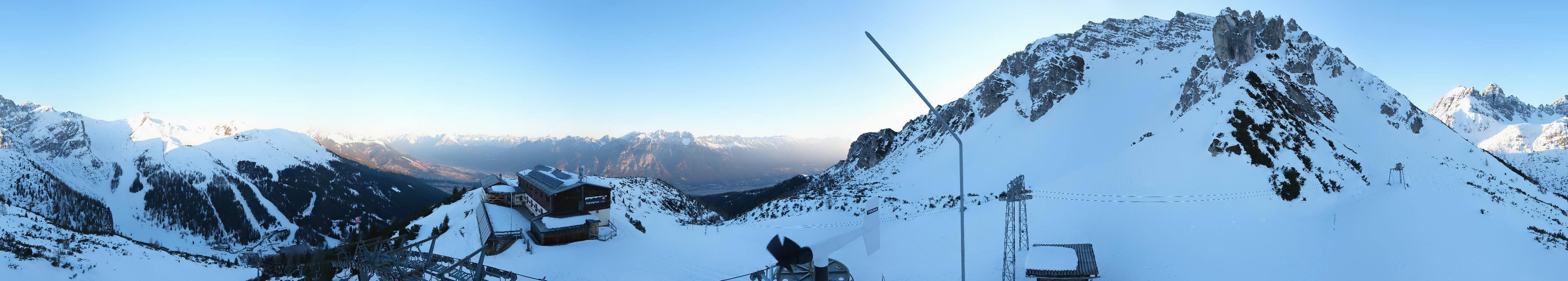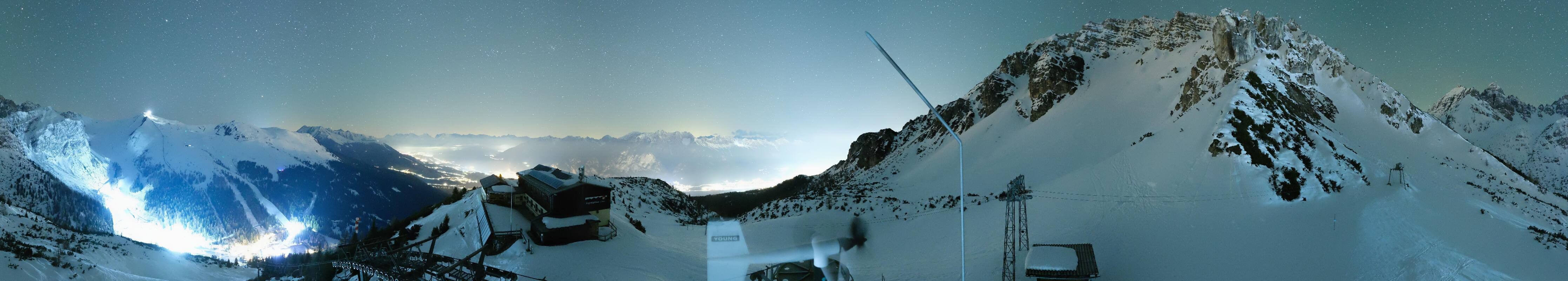 The webcam is located at the top station of the Birgitzköpfl chairlift next to the Birgitzköpflhaus in the ski resort Axamer Lizum not far from Innsbruck. You can also see the Götzner Grube T-bar lift.