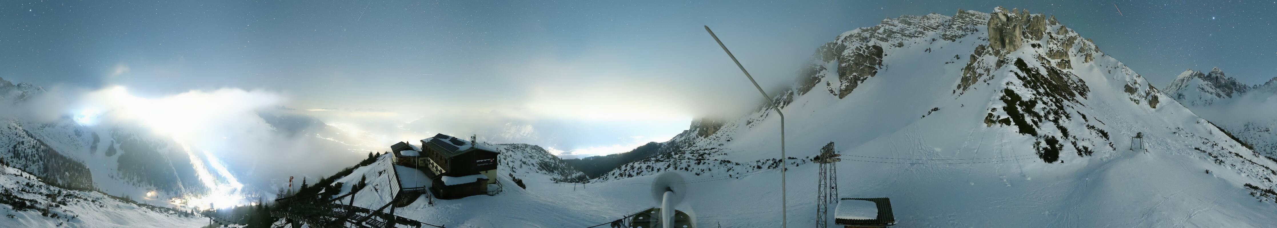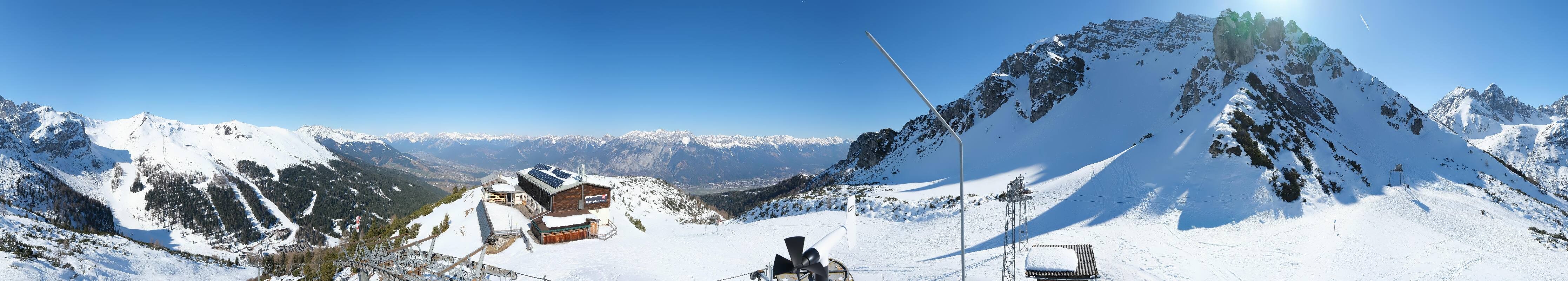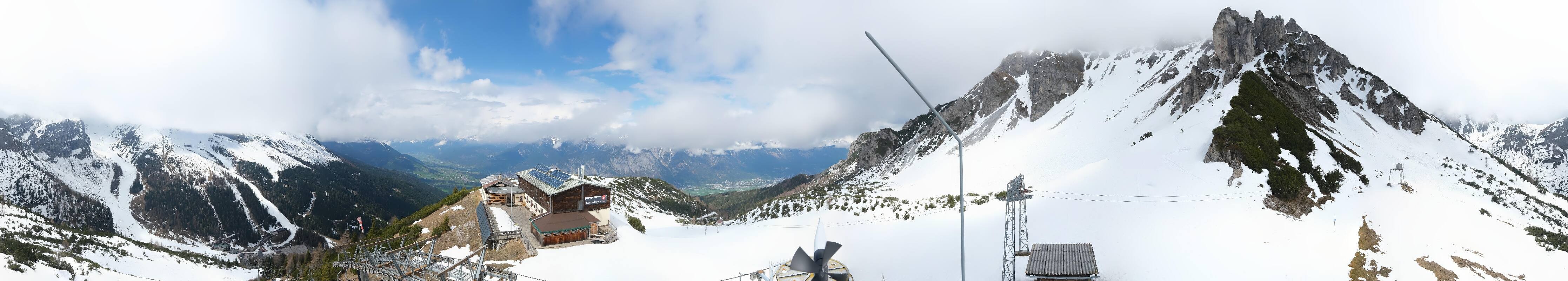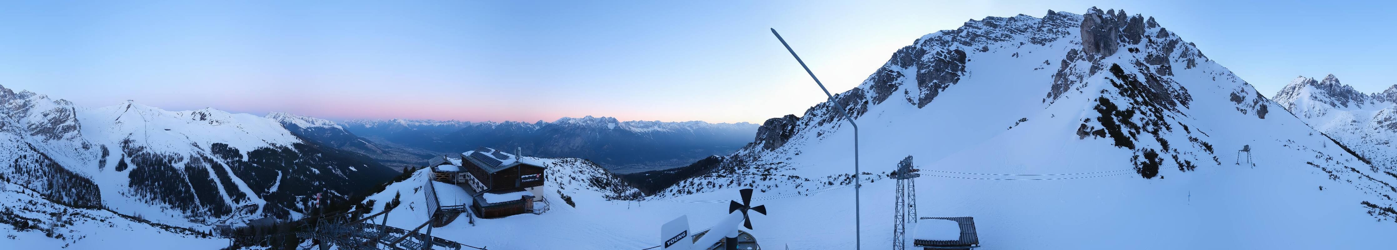 The webcam is located at the top station of the Birgitzköpfl chairlift next to the Birgitzköpflhaus in the ski resort Axamer Lizum not far from Innsbruck. You can also see the Götzner Grube T-bar lift.