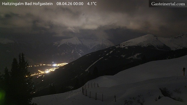 Archived webcam image showing Haitzingalm at Bad Hofgastein Ski Resort on 8 Apr 2026 at 00:02 23:00