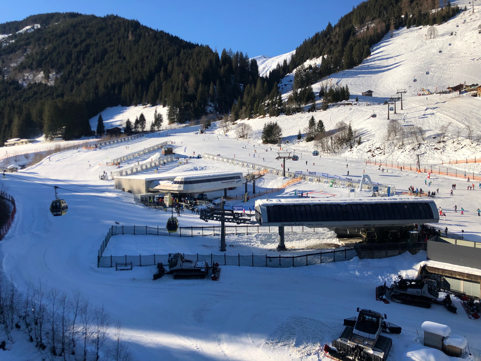 A first glance at the trail map reveals that the majority of Bad Gastein ski resort is skiable on easy terrain. Only few gentle slopes require that more difficult terrain must be crossed. Winter athletes who have no skiing experience at all are recommended to begin their snow sports career at the “Skizentrum Angertal” where numerous beginner lifts are located as well as the kidspark featuring several magic carpet lifts. Once ski basics are mastered you can choose between the Kaserebenbahn (gondola) or the Angertal chair lift which take you in no time at all to the easy (blue) slopes B21 and H31). Also recommendable novice terrain are the blue B14 right by the Stubnerkogel gondola. And don’t worry, if the easy slopes give in before your legs do, just switch onto one of the intermediate slopes which are adjacent to every blue slope in that area. We conclude: a very nice novice ski resort!