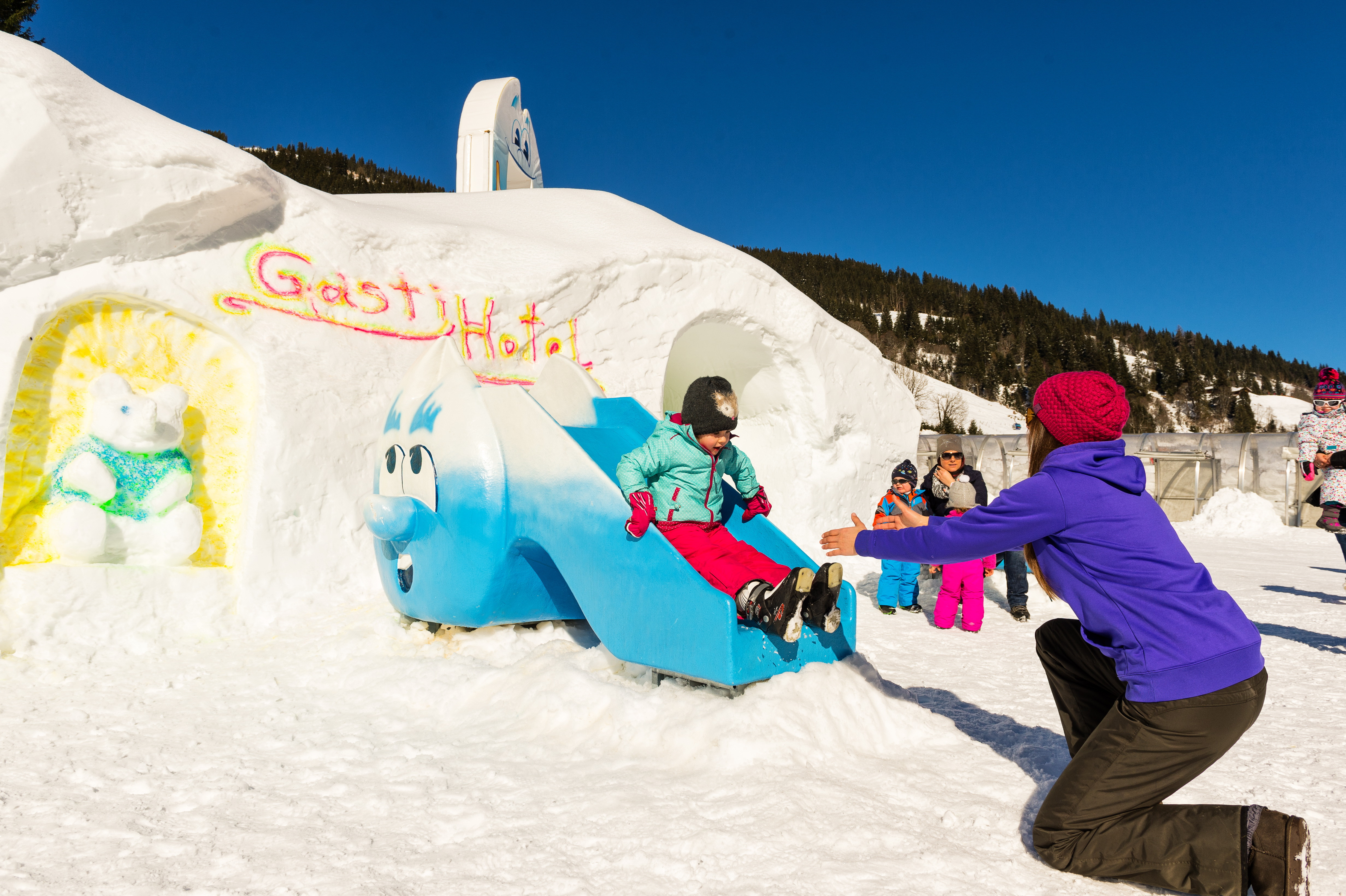 We are letting the cat out of the bag right away: Bad Gastein is a family paradise! Unequalled is the huge beginner area in the Angertal which will certainly enthuse your kids. The local ski school provides excellently for the little ones. The funny and friendly ski teachers have a beautiful kids park at their disposal. Chances are your children will never want to leave. Numerous Magic Carpet lifts and charming obstacles guarantee a playful and convenient introduction to snow-sports. A further family advantage is the fact that the beginners area can be easily reached by car as the ample parking spaces are only few meters away. Families who prefer to explore the ski resort without the help of a professional ski instructor have only to overcome easy or intermediate level terrain which makes the day on the slopes fun and feasible for all family members. We especially recommend the very long easy trails B15 and B14 located right at the Stubnerkogel Gondola which leads right into Bad Gastein Valley. Intermediate skiers and riders should definitely not miss out on the B11 trail which takes you from the Stubnerkogel to the “Skizentrum Angertal”. All in all a perfect family destination rewarded with our very best mark: 10 points!
