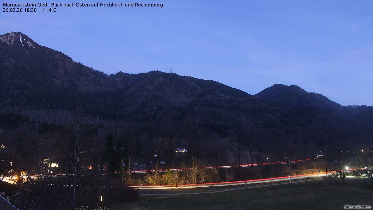 This webcam is located in Oed in the south of Marquartstein (Chiemgau) and shows the view to the east to Hochlerch and Rechenberg.