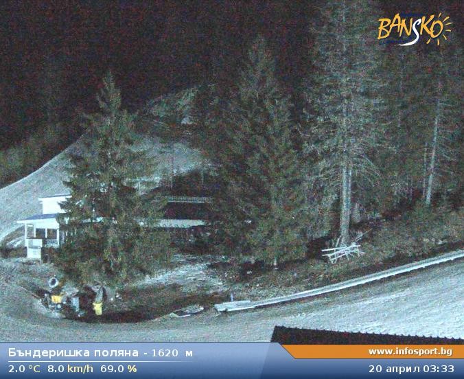 Archived webcam image showing Bansko Ski Resort: Bunderishka polyana on 20 Apr 2026 at 02:22 02:00