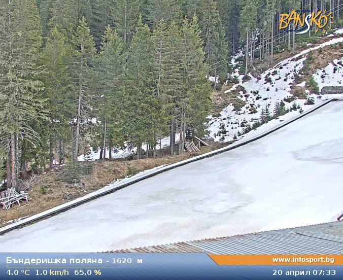 Archived webcam image showing Bansko Ski Resort: Bunderishka polyana on 20 Apr 2026 at 07:22 07:00