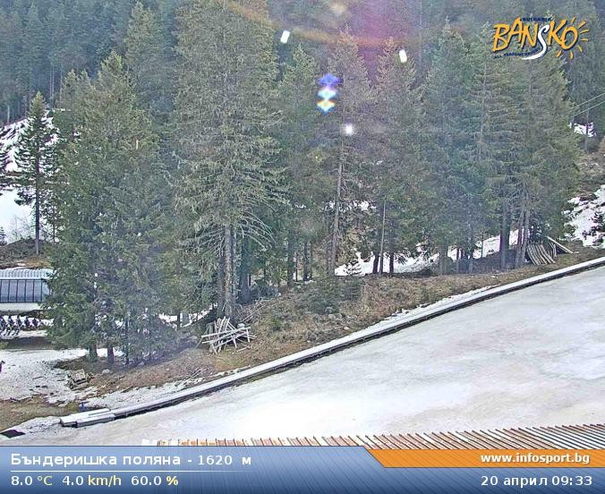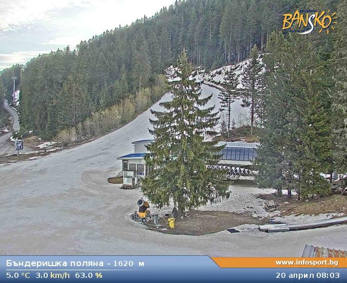 Archived webcam image showing Bansko Ski Resort: Bunderishka polyana on 20 Apr 2026 at 08:22 08:00