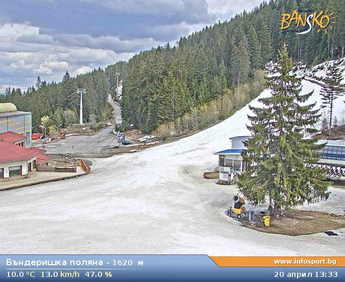 Archived webcam image showing Bansko Ski Resort: Bunderishka polyana on 20 Apr 2026 at 10:22 10:00