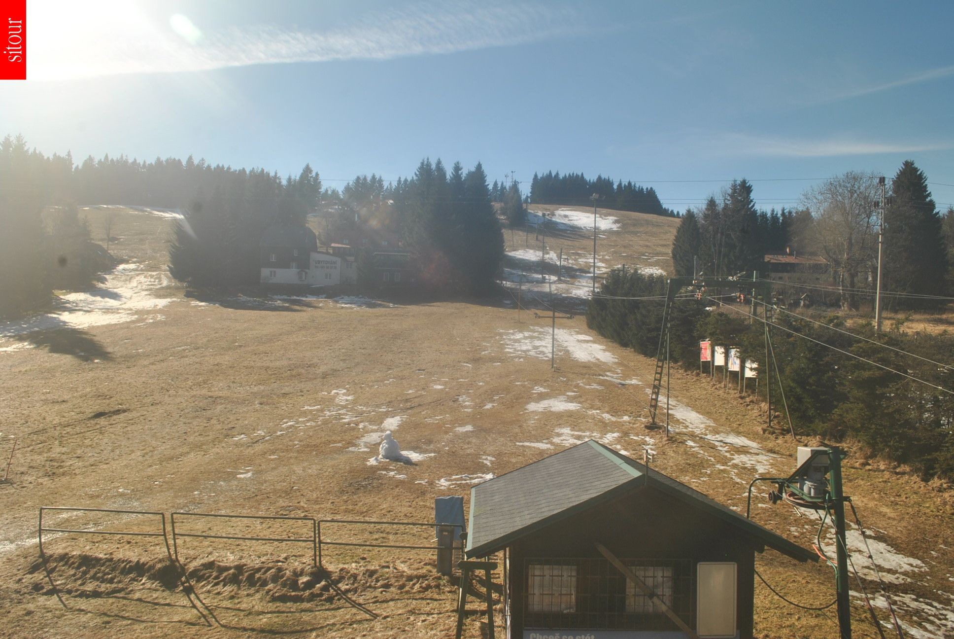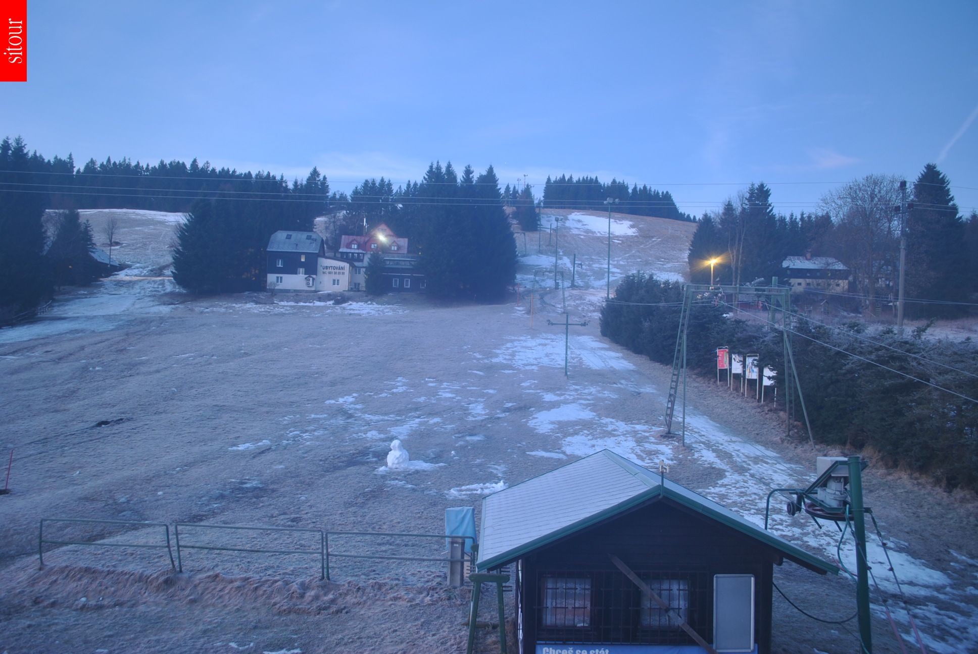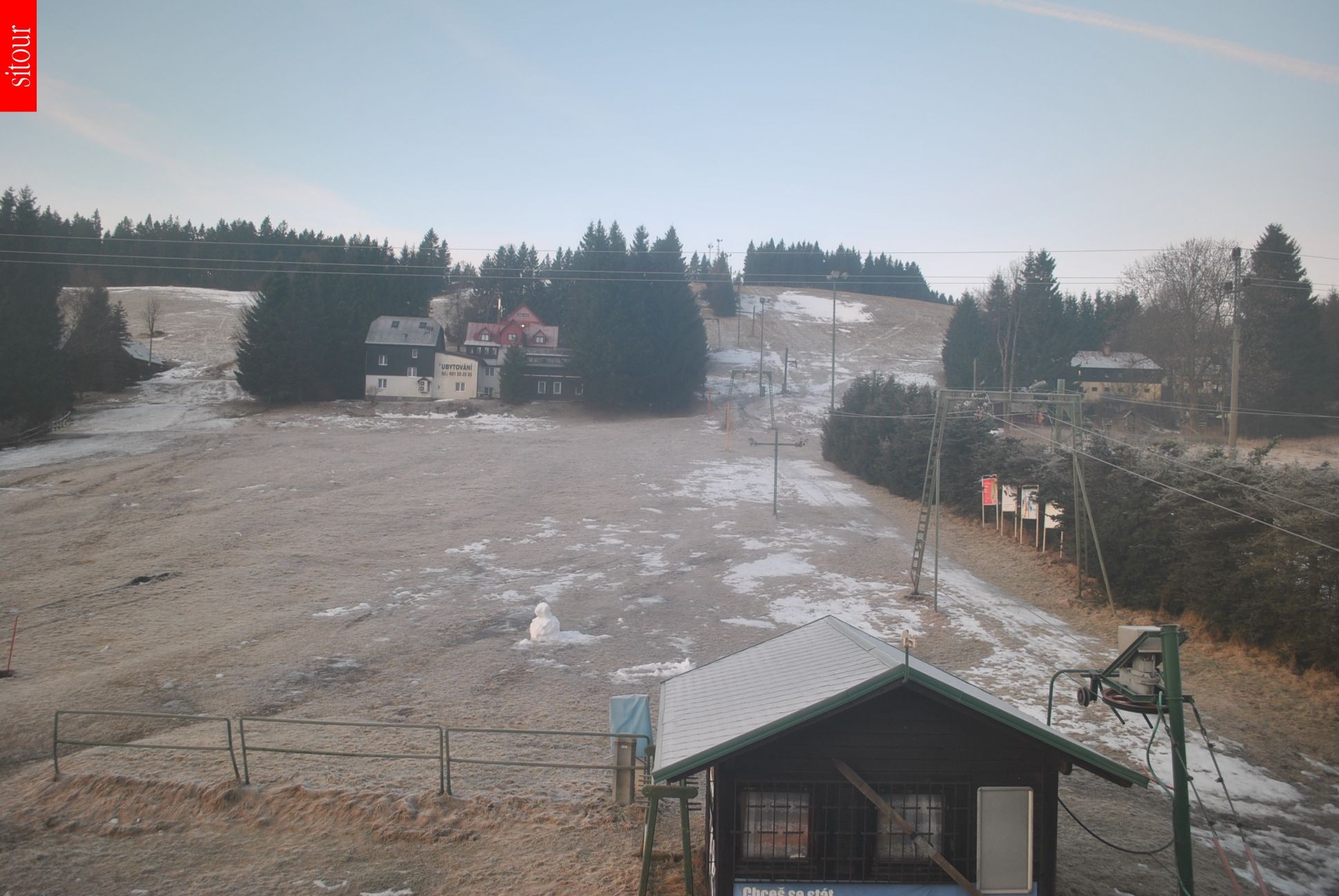 Located at the base station of the Malinovka t-bar lift in Bedrichov the webcam is looking towards the easy and moderate Malinovka slopes.
