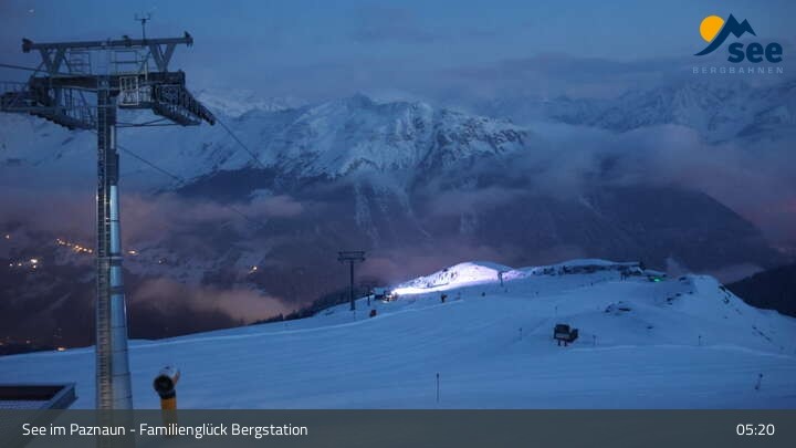 Archiviertes Webcam Bild: Bergbahnen See: Familienglück Bergstation am 22.03.2026 um 05:13 Uhr 05:00