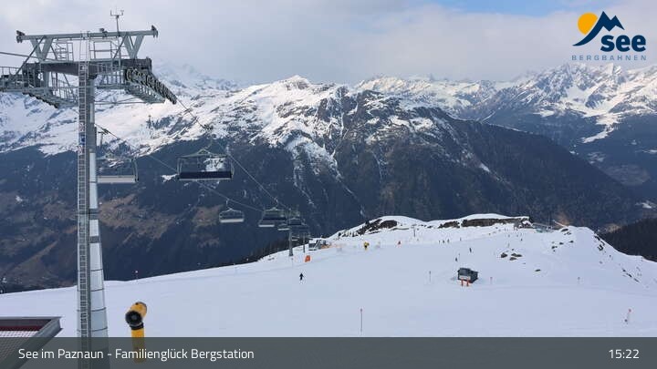 Archiviertes Webcam Bild: Bergbahnen See: Familienglück Bergstation am 22.03.2026 um 15:13 Uhr 15:00
