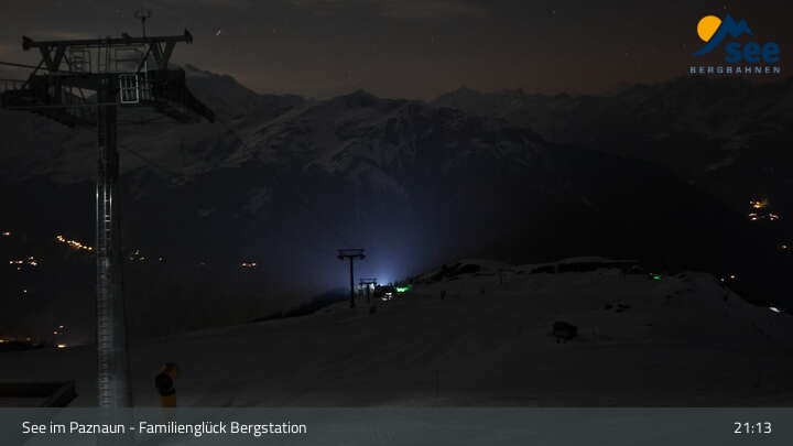 Archiviertes Webcam Bild: Bergbahnen See: Familienglück Bergstation am 22.03.2026 um 21:13 Uhr Latest