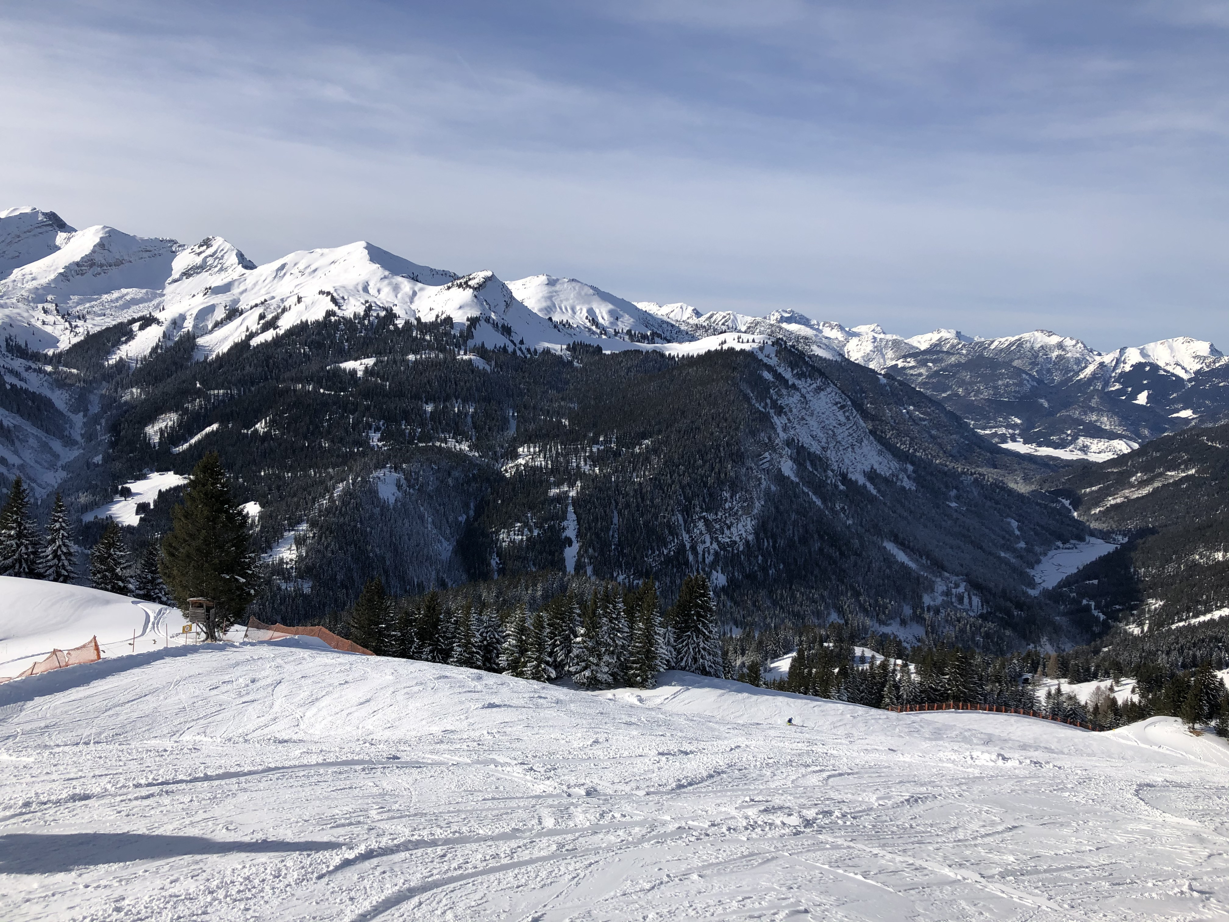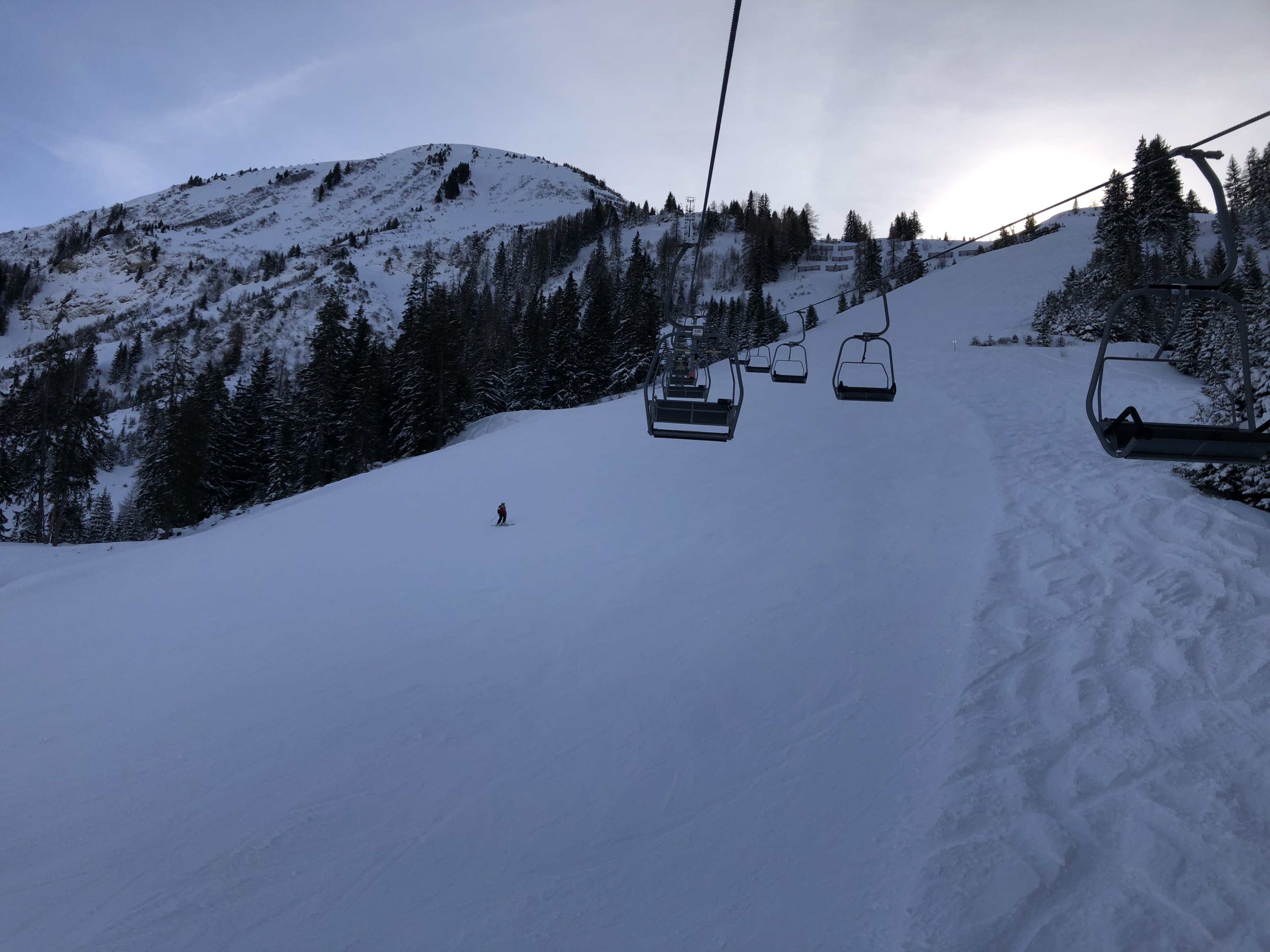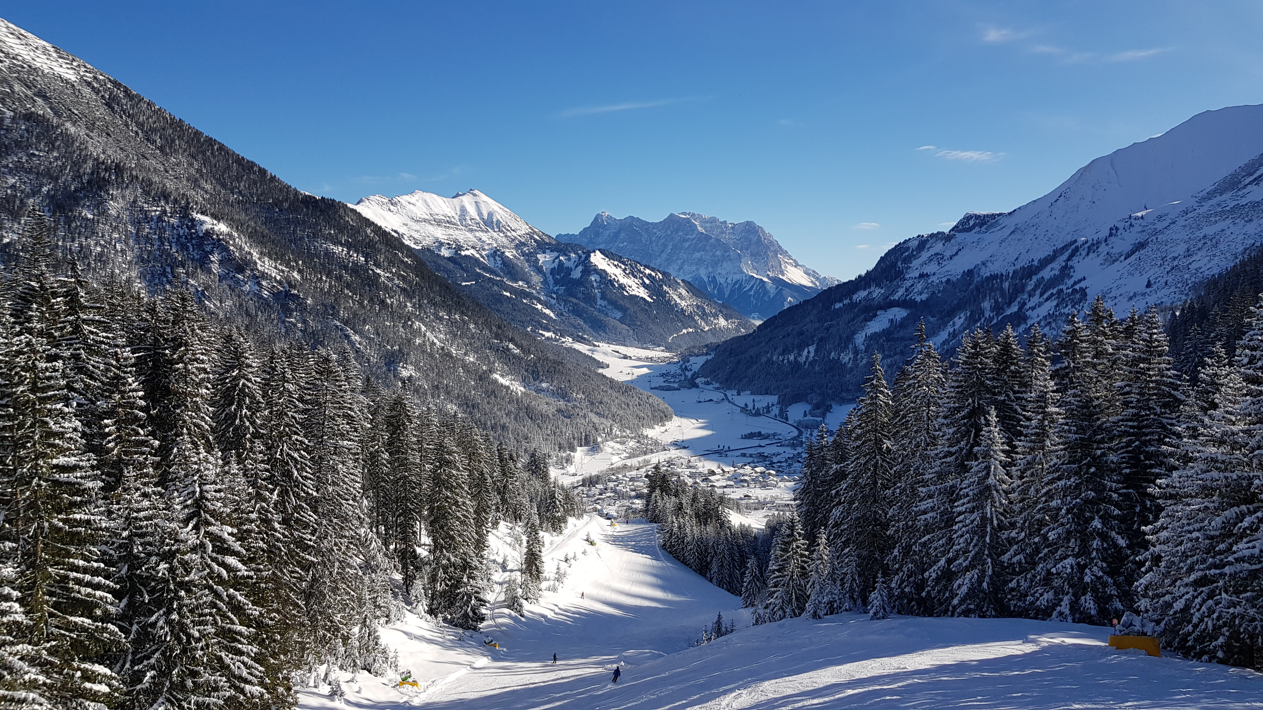 The ski resort framing the little village of Bergdorf Berwang at 1342 meters above sea level can offer more practiced skiers about 15 kilometers of red trails as well as a 1.6 kilometer-long black trail, which shouldn’t present too much of a challenge for intermediates. The black trail and the bulk of the reds all come off of the 1740m-high Oberer Rastkopf. One nice red (which turns into a blue at the bottom) can be found off the Thanellerkar lift. But should the 15 kilometers of red trails fail to suffice, thanks to the cooperation between the members of the “Tiroler Zugspitzarena”, your lift ticket will get you into all five of the other ski areas belonging to the arena.