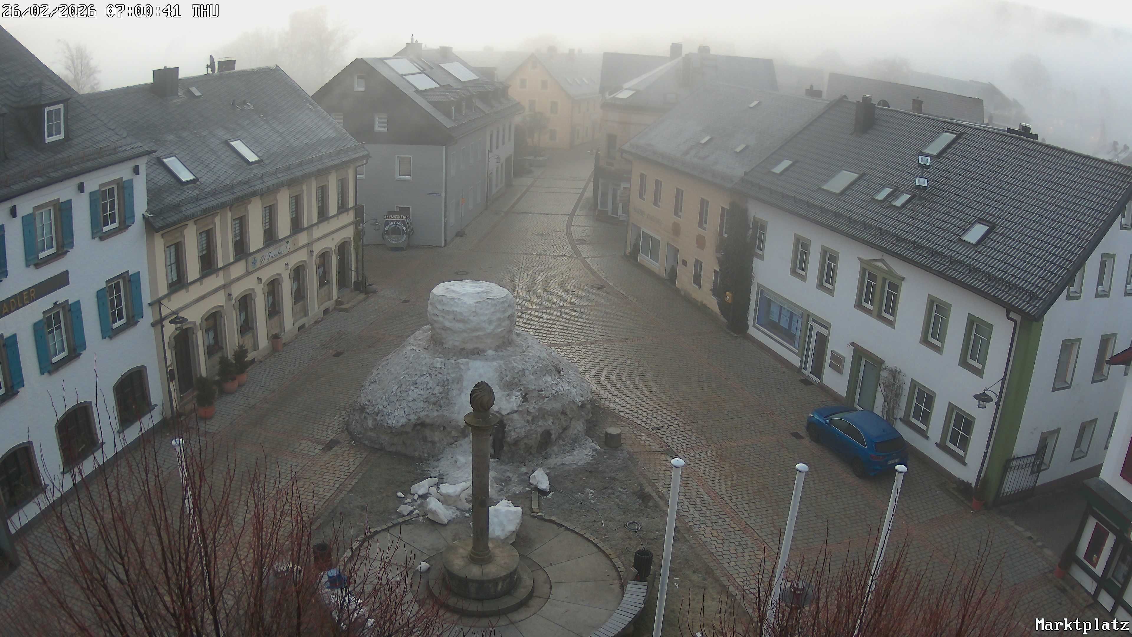 Archived webcam image showing Market square Bischofsgrün on 26 Feb 2026 at 07:55 06:00