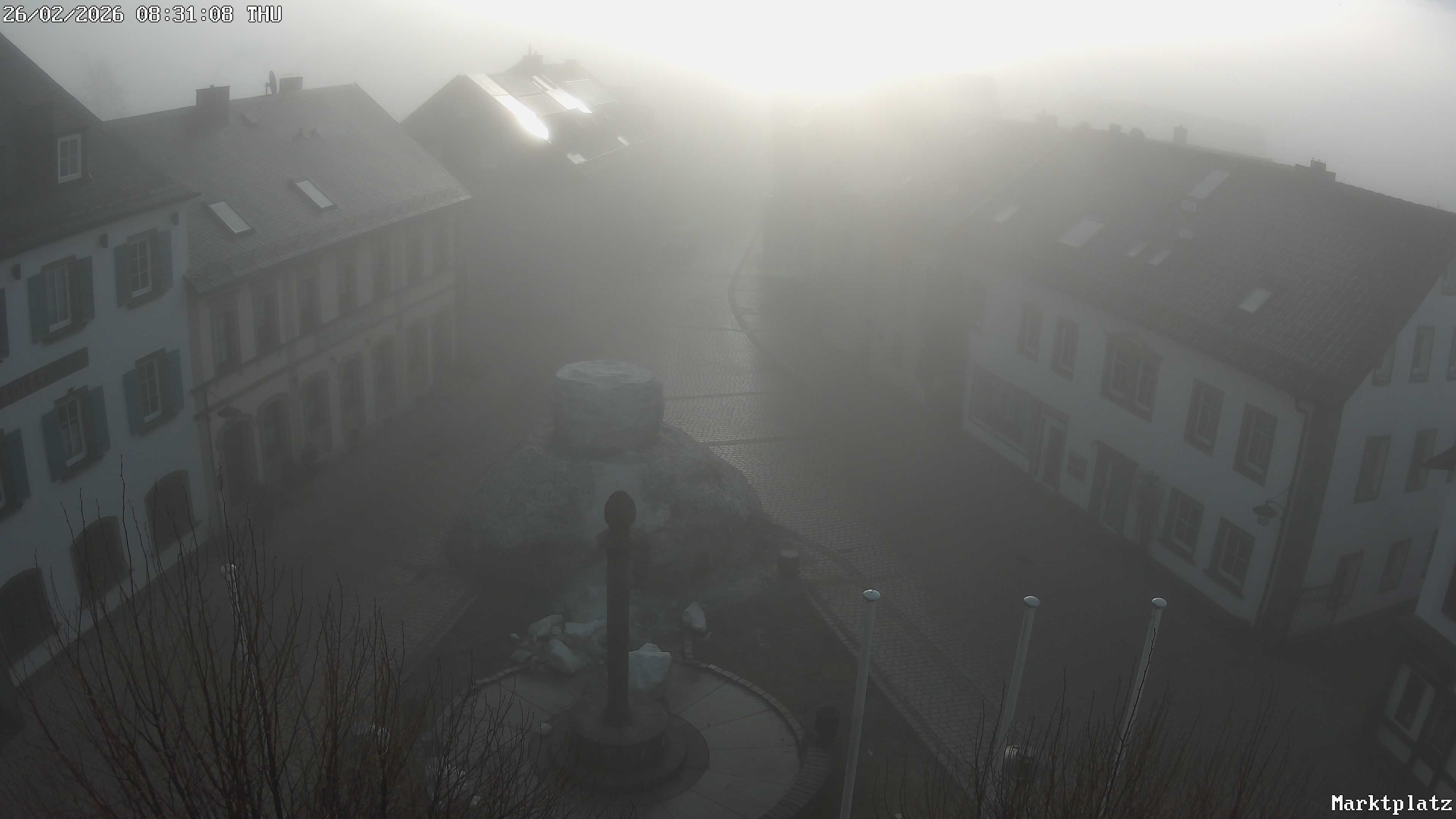 Archived webcam image showing Market square Bischofsgrün on 26 Feb 2026 at 08:55 07:00
