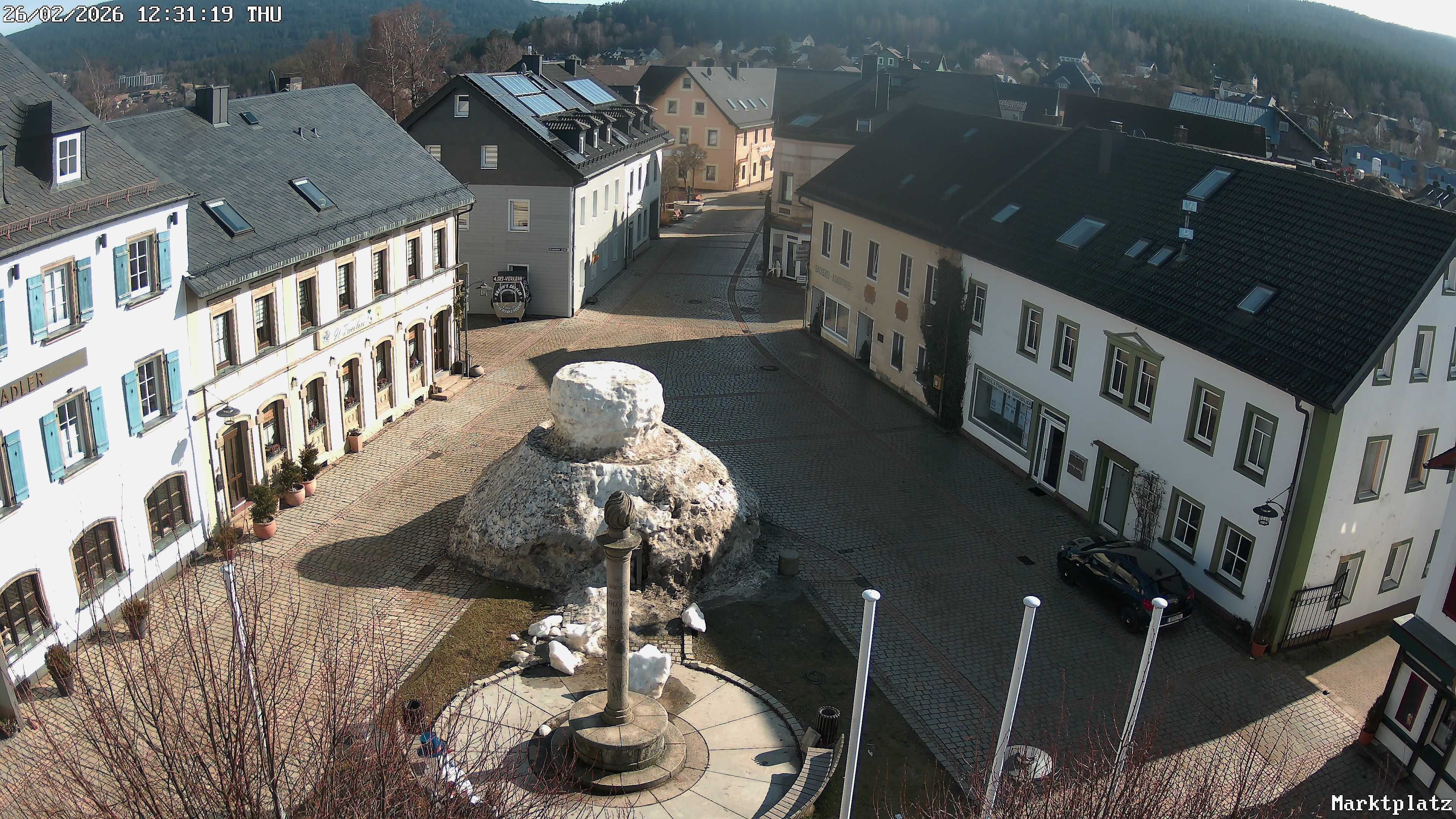 Archived webcam image showing Market square Bischofsgrün on 26 Feb 2026 at 12:55 11:00