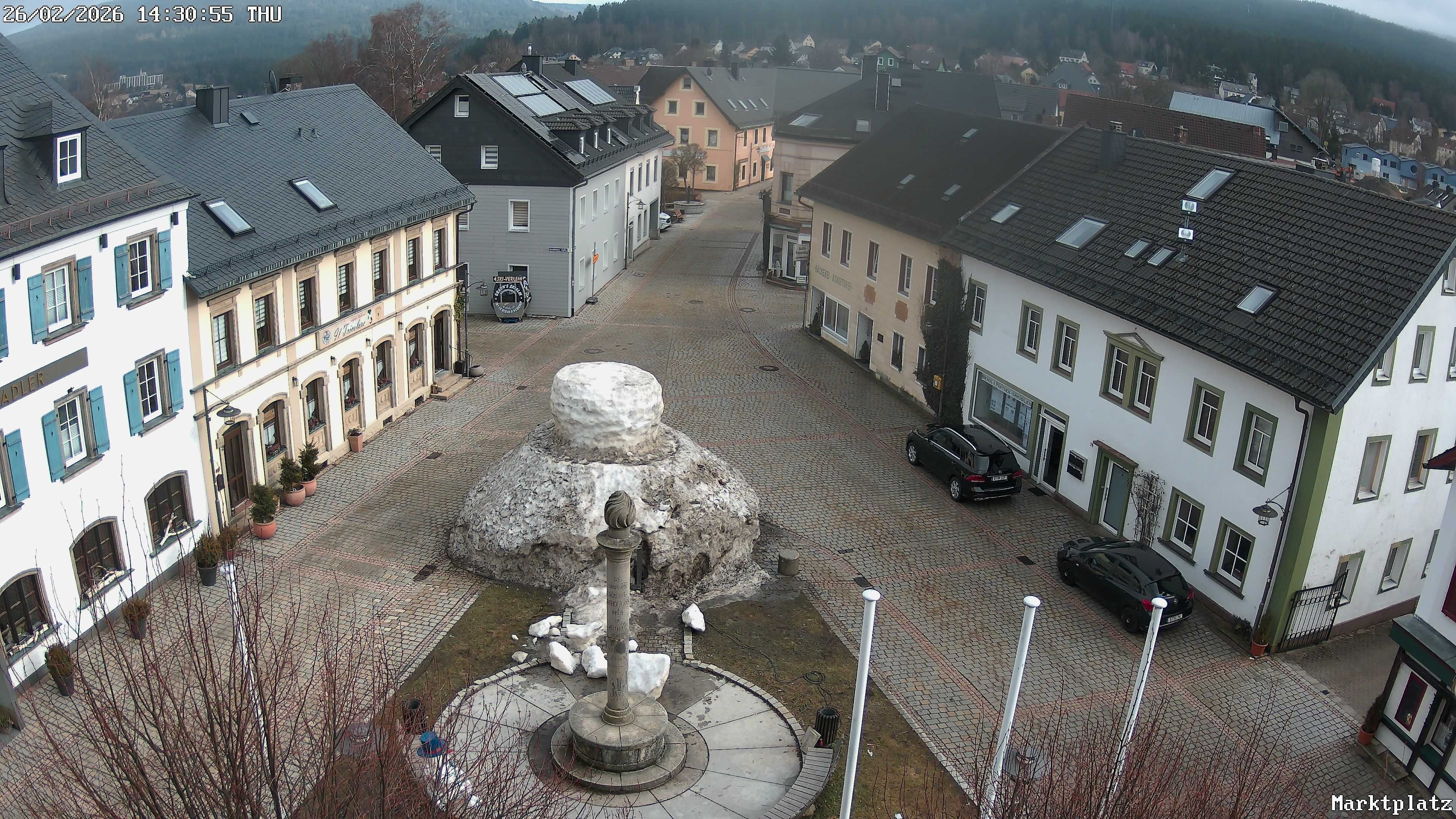 Archived webcam image showing Market square Bischofsgrün on 26 Feb 2026 at 14:55 13:00