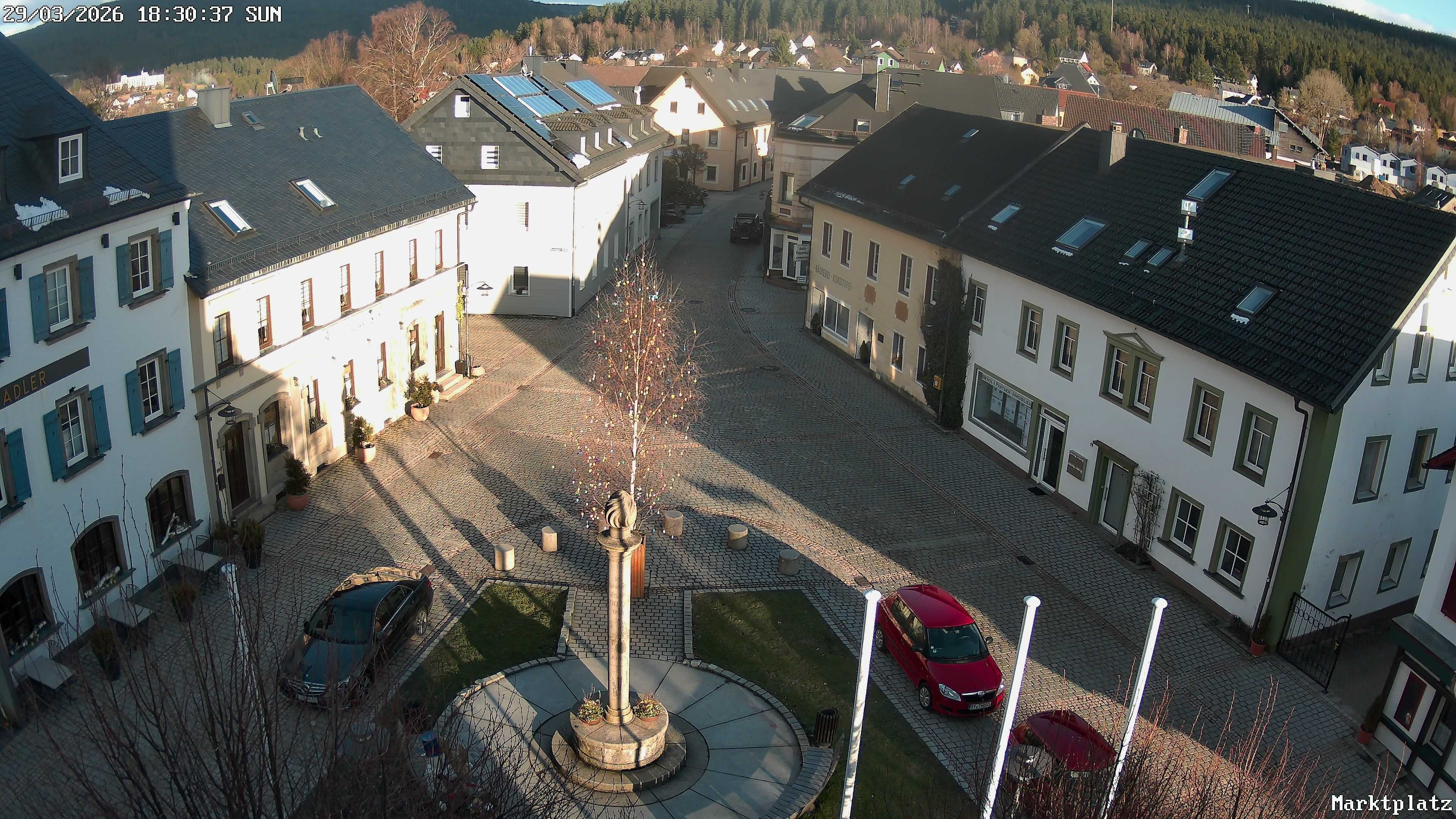 Archived webcam image showing Market square Bischofsgrün on 29 Mar 2026 at 18:10 17:00