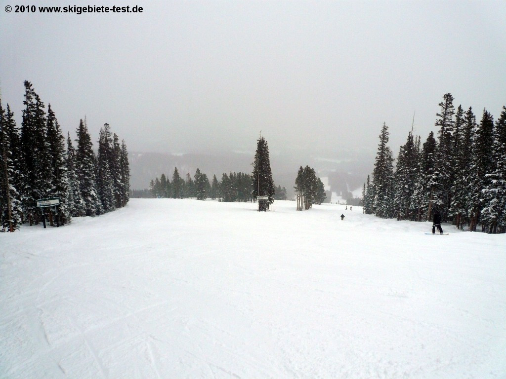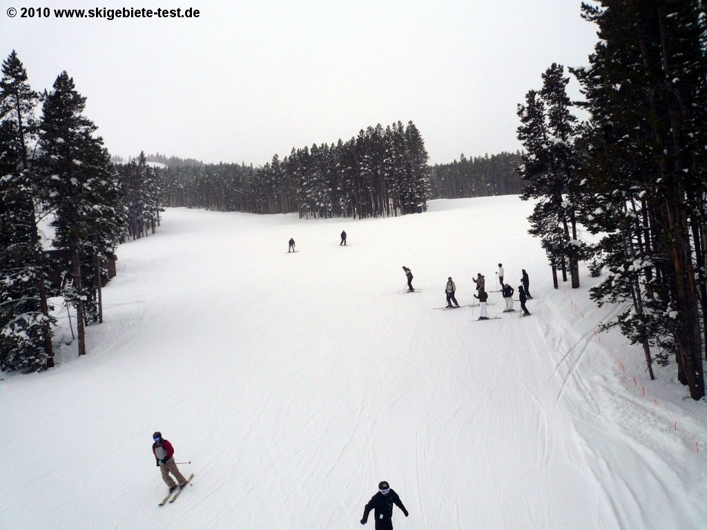 Beckenridge scores in the intermediate category. Peak 9, Peak 8 and Peak 7 are home to an abundance of intermediate terrain. Skiers are spoilt for choice: broad carving trails, ungroomed powder runs, moguls – anything the skier heart desires! Leisure skiers looking for nicely groomed slopes will probably feel most comfortable at Peak 9. Trails there are not among the steepest, however the length and breadth make up for the missing precipitousness. Skilled skiers face some real challenge at Peak 10 where demanding trails leading through pine forests, like the “Cimarron” or “Spitfire” await to be conquered. Those looking for some pristine powder runs will love the terrain between Peak 8 and Peak 9 at “Chair 6”. Keep in mind that the powder runs are challenging and should only be ventured into by those strong of leg and lung.