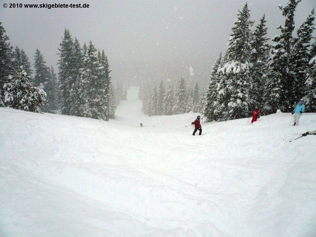 The natural tree line in Colorado is at about 3600m above sea level. Consequently tree-free powder runs are rare. In Breckenridge the new “Imperial Express SuperChair” takes skiers and boarders up to 3962m and therefore is the highest High-Speed-Chair in the entire US. The terrain made accessible by the chair is among the nicest free ride terrain to be found in Colorado! The highlight for all free skiers and boarders is the “Horseshoe Bowl”. If you are willing to put up with a hike you will always find some pristine slope to draw first tracks into. Slalom- and giant slalom aces have the beautiful “Race Area” at the “Run Super Chair” at their disposal! Beckenridge only narrowly missed the highest mark in the Expert Category. Due to the fact that trails at Peak 8 and Peak 9 are rather flat and can’t be avoided in order to get to the more challenging areas of the resort we took away 0, 5 stars. Still Beckenridge was awarded our “Top for experts” award as 4,5 stars remains an excellent result!