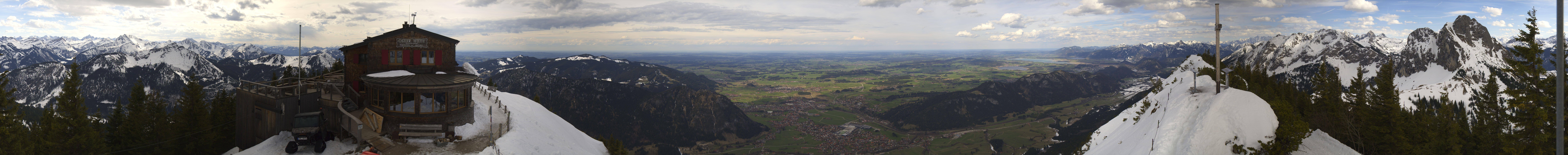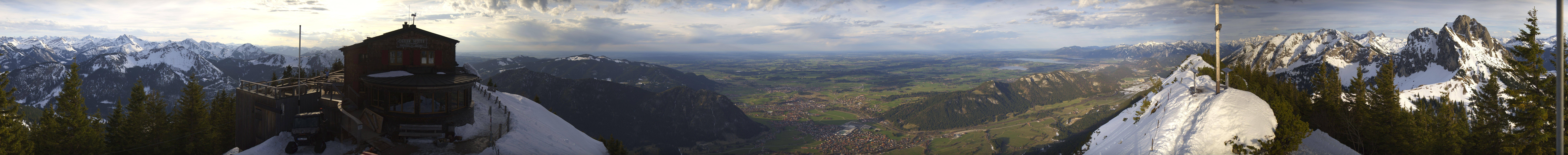 The webcam shows the mountain hut Ostlerhütte at the top of Mt. Breitenberg near Pfronten.