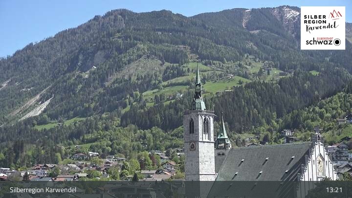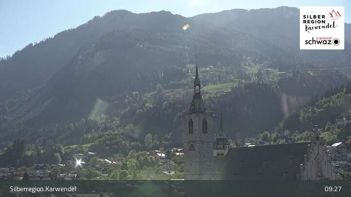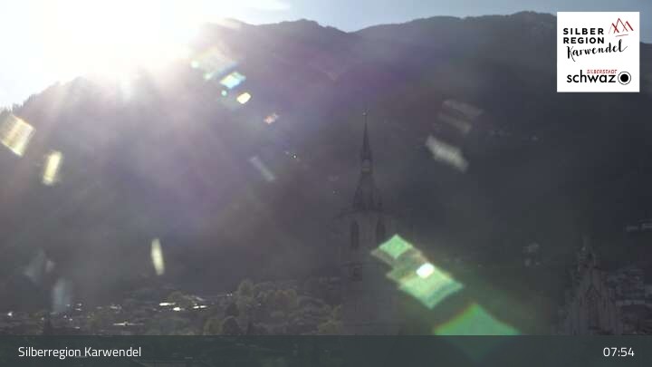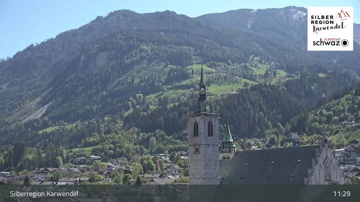 This webcam looks towards the town of Schwaz in silver region Karwendel in Tyrol.