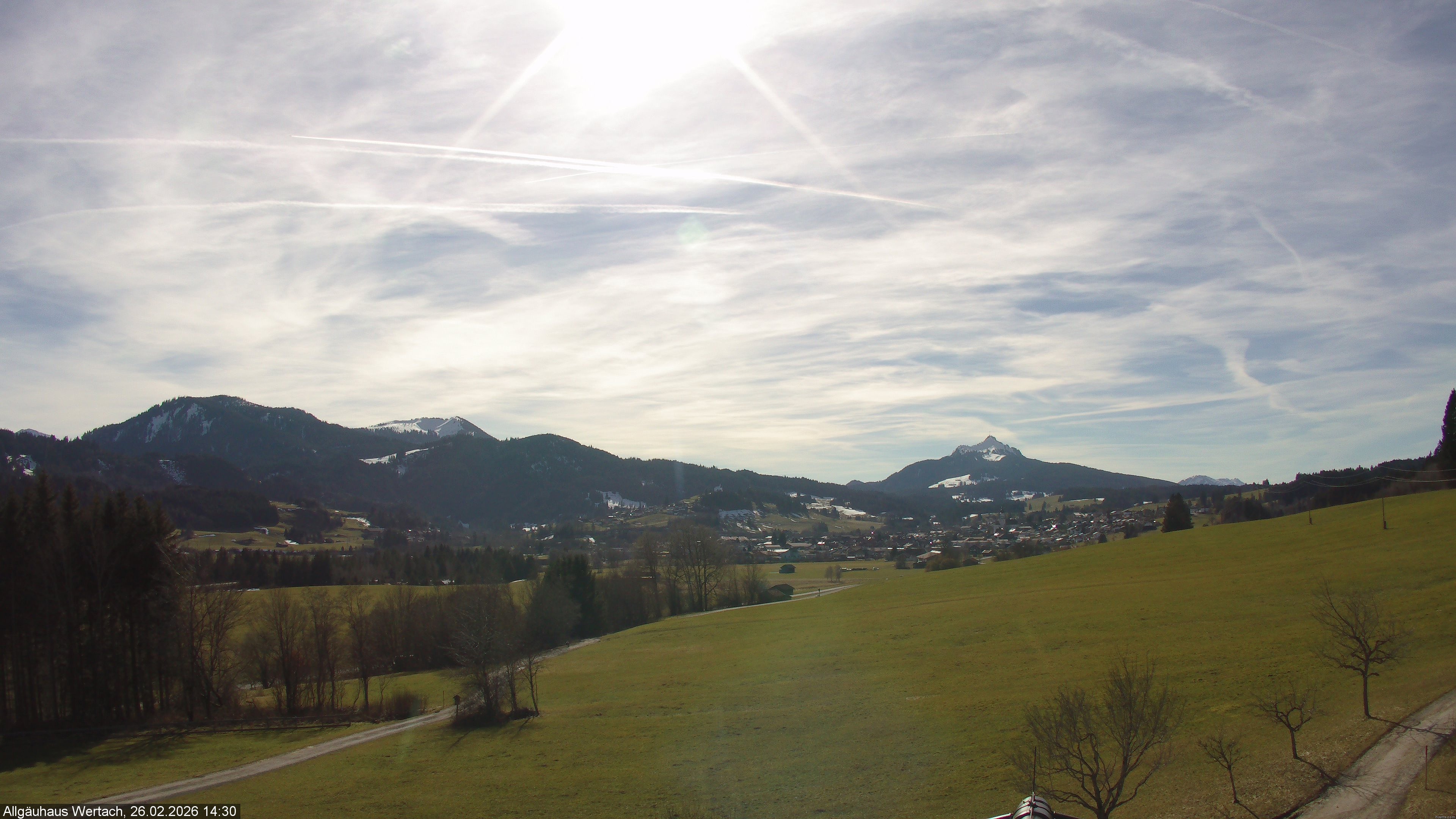 Archived webcam image showing View from the Allgäuhaus in the valley on 26 Feb 2026 at 16:56 Latest