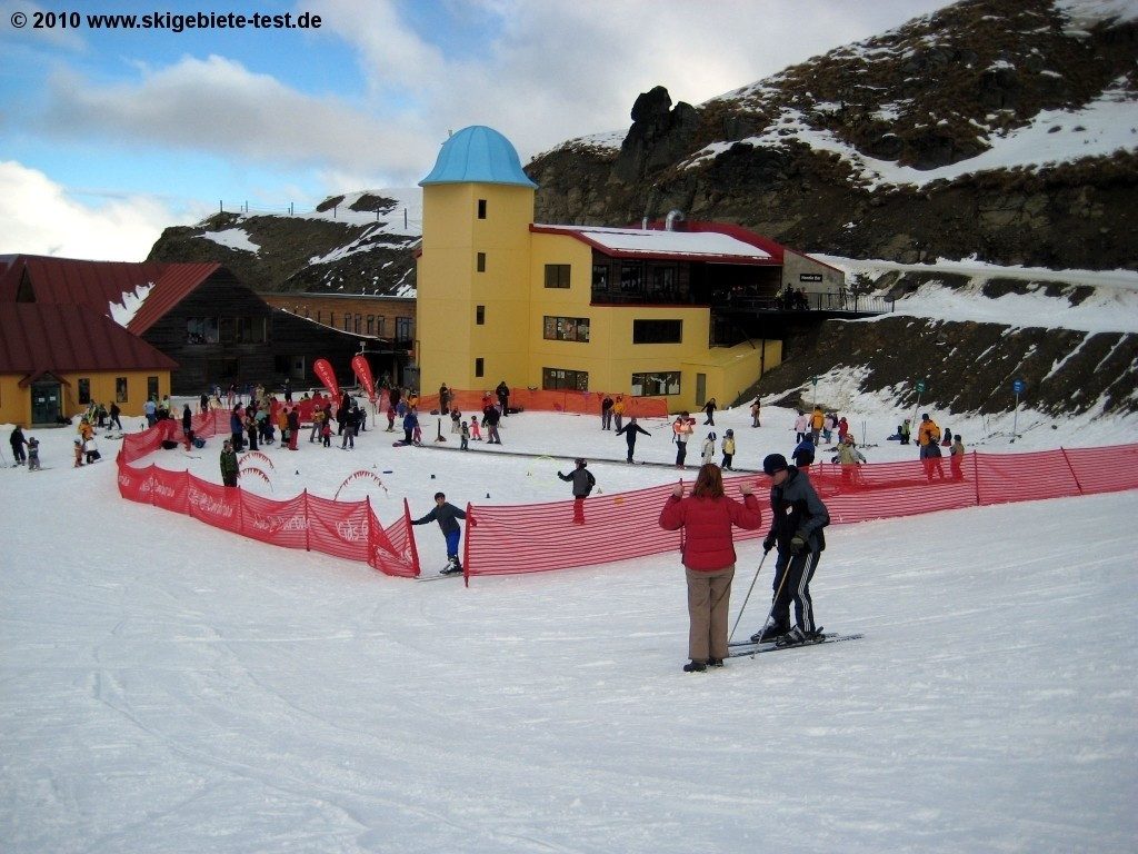 Ski resorts in New Zealand don’t always make life easy for beginners. Steeps and chutes and pristine powder slopes is more an expert dream come true and beginners are often forgotten by the ski resorts! However Cardrona is an exception!!! Right by the base of the MacDougall Quad are three magic carpet lifts that take the first timers safely and comfortably up the flat practicing slopes. And those that feel more secure on skis or board can hop into the Mac Dougall’s Quad to get to the three easy slopes (earmarked green) “Shaun’s Way, “Foottrot Flats” and”Skyline”. The “Skyline” trail is a must see due the breathtaking view of snow-capped mountain peaks and the beautiful lakes around Queenstown. Even though Cardrona like all other ski resorts in New Zealand is world-famous for its demanding powder runs, it is one of the best beginner ski resorts in New Zealand and absolutely deserves the good rating of 4 stars in the beginners category.