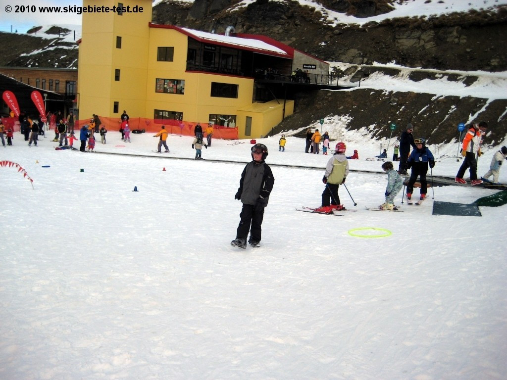 As depicted in the beginners’ category Cardrona offers great facilities and trails even for less experienced skiers and boarders. The “Cardrona Kids Centre” features four different programmes and therefore can offer every family the suitable care. The nursery is dedicated to the very small. The Ski Koral (3-4 years), the Junior Kids Club (5-8 years) and the Senior Kids Club (8-14 years) see to the kids during the entire ski vacation. And as long as families keep away from the ungroomed off-piste slopes and the very difficult terrain at the “Arcadia Chutes” it is no problem to explore the resort together. Especially recommendable is the easy Footrot Flat (earmarked green) right below the “MacDougall’s Quad”. At the terminal of the trail the three magic carpet lifts are situated which offer your kids a fun and convenient introduction to winter sports!