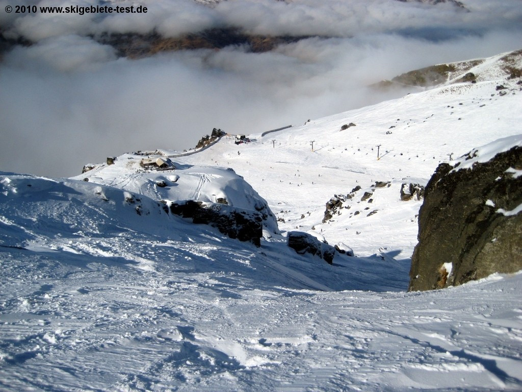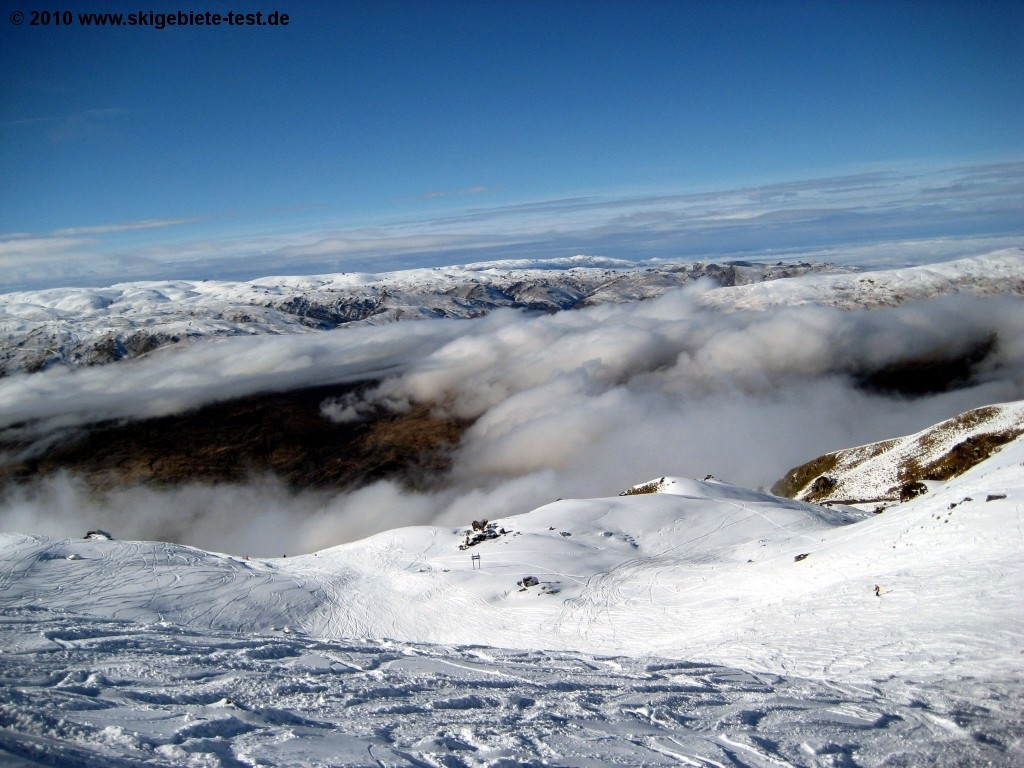 New Zealand has long ago gained its reputation with free riders and powder cracks. Also Cardrona features some of the terrain that is only for those that are strong of lung and courage! Pure free ride fun is offered on steeps like “Irish Pipes”, “Powder Keg” or “Secret Chute”. Especially the “Eagle Rock” next to the “Captain’s Quad” we found to be quite challenging. This slope attains up to 45° of inclination and should only be skied when there is little danger of avalanches. With about 20 % of difficult runs (earmarked black) Cordrona specialises less on expert skiers than for example Mt. Hutt in Canterbury or Treble Cone. The majority of the ski resort can also be skied by less experiences skiers. When our test team visited Cardrona a giant slalom track was available temporarily however a permanent racing track is missing.