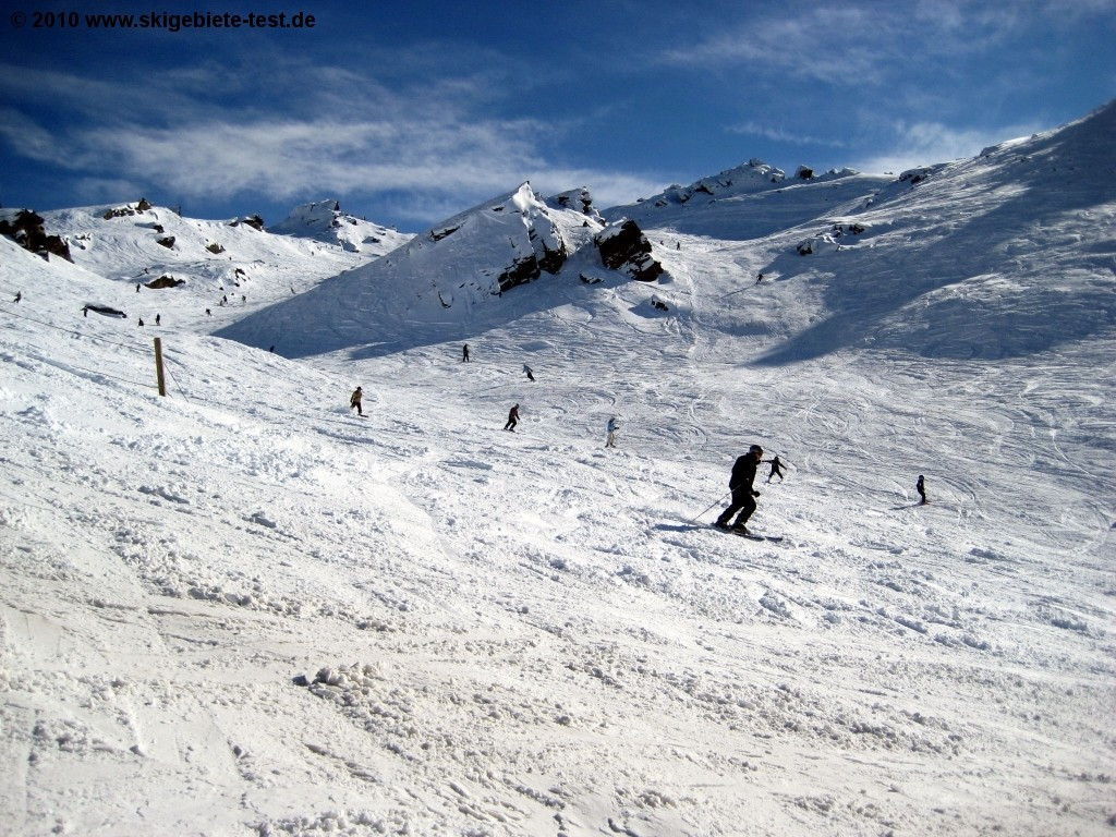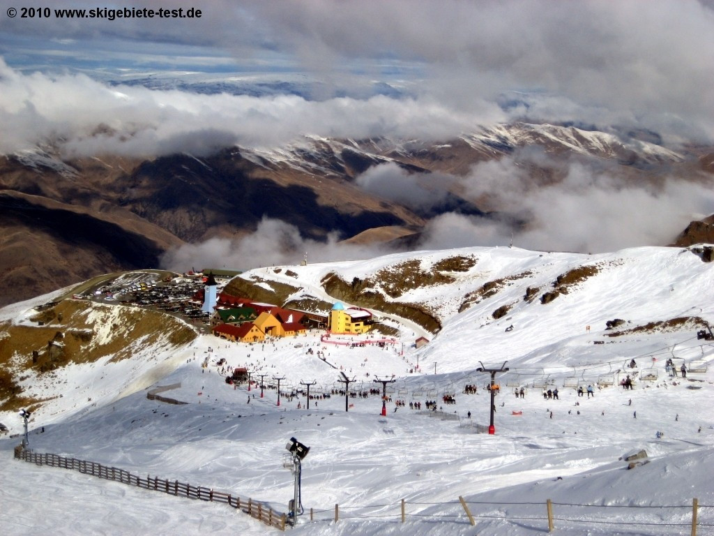 With its three modern chair lift facilities Cardrona belongs without doubt to the larger and better ski resorts in New Zealand (even though this might seem difficult to imagine for European and North Americans). Our test-team especially enjoyed Cardronas location above the untouched and pristine “Cardrona Valley”. Not even the colourful buildings above the parking lot are a downer although one can’t get rid of the impression that an ( unsuccessful ) imitation of an Austrian or Swiss mountain village was tried there. Especially in the snowboarding and family category Cardrona really convinces and was able to obtain the “TOP for snowboarders” and TOP for families” award.