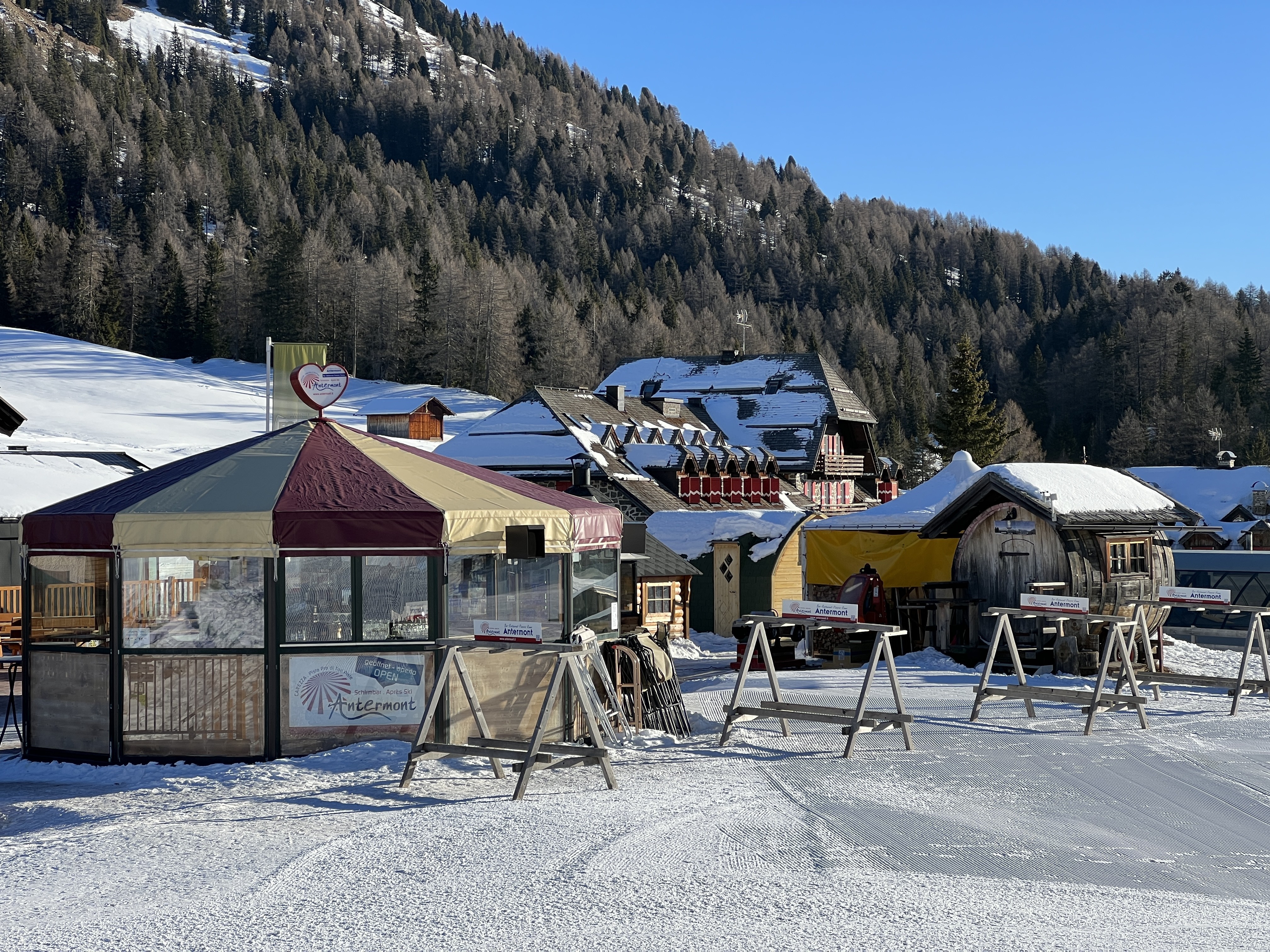 Attention to all those who like to drink something alcoholic on the mountain: In Italy, the alcohol limit on the slopes is 0.5, so if in doubt, it's better to take the gondola down. However, this is easily possible in Welschnofen (pay attention to lift times!). Easier: toast the skiing day in the valley. This is possible, for example, at the Antermont umbrella bar on the Passo Carezza.