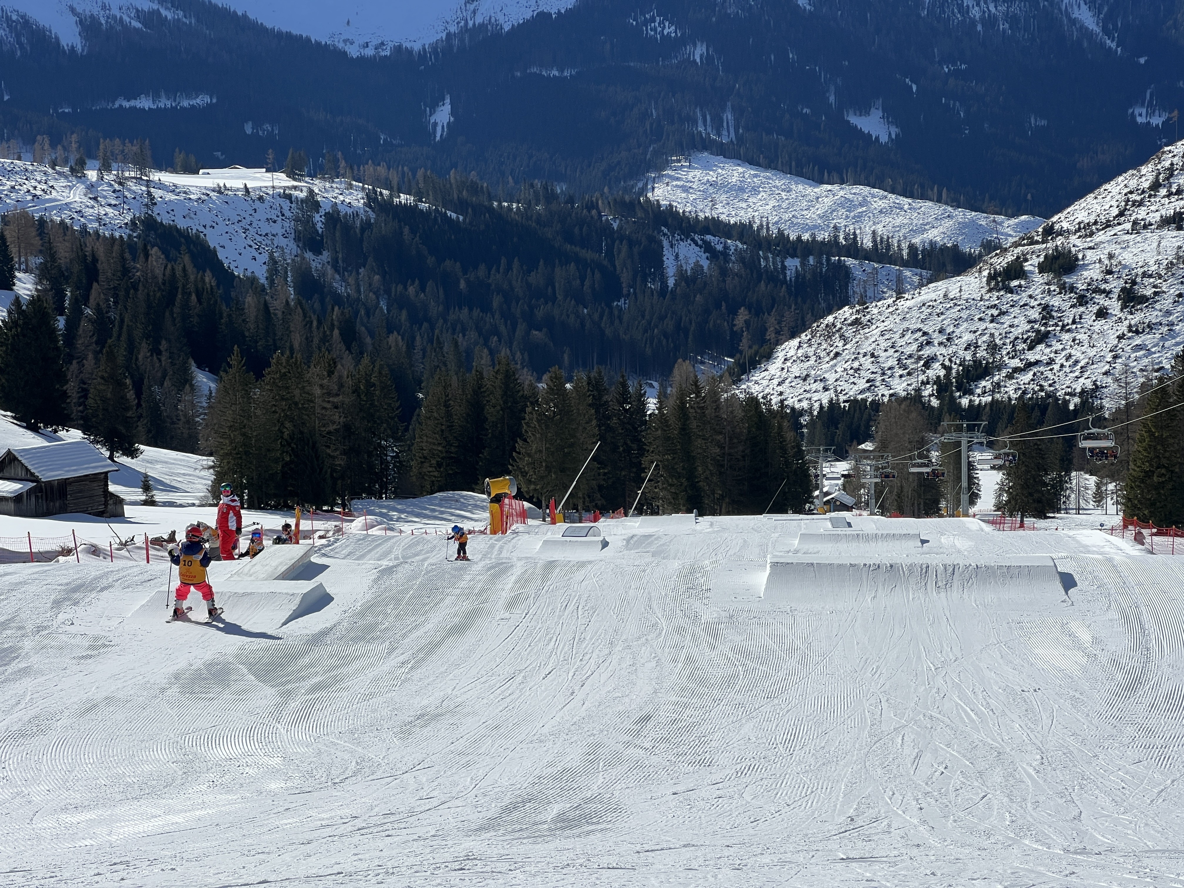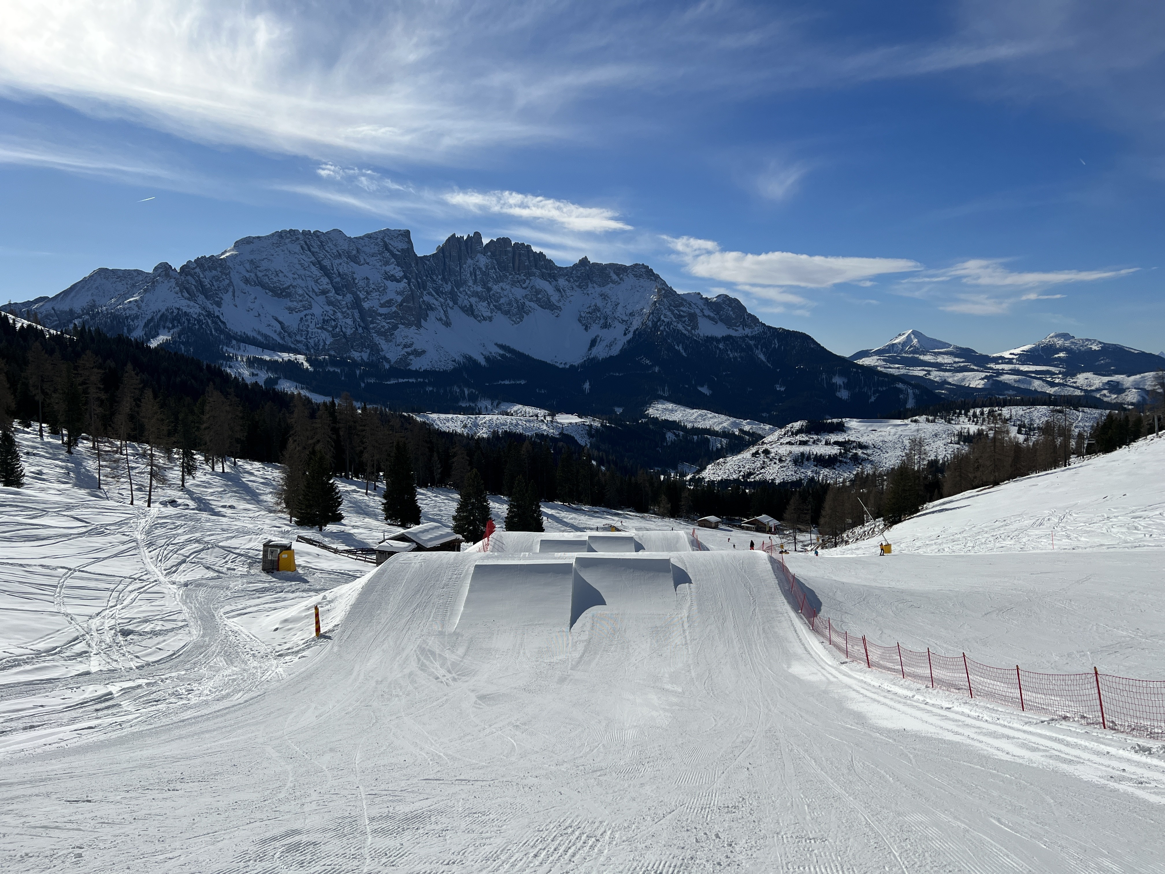 Carezza can also convince in the freestyle category. The snowpark is located on the Tschein slope and thus in front of a truly fantastic mountain backdrop. There are several lines in different levels of difficulty. The obstacles range from bigger kickers in the Medium Line to smaller rails and boxes in the Easy Line to fun elements for kids in the Family Fun Line. For real freestyle beginners there is even a Learning Park.