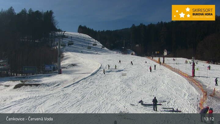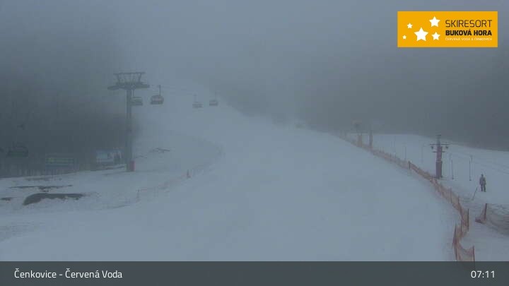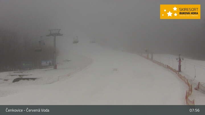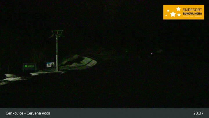 The webcam is located at the top station of the ski lift F in the Czech ski area Cenkovice.