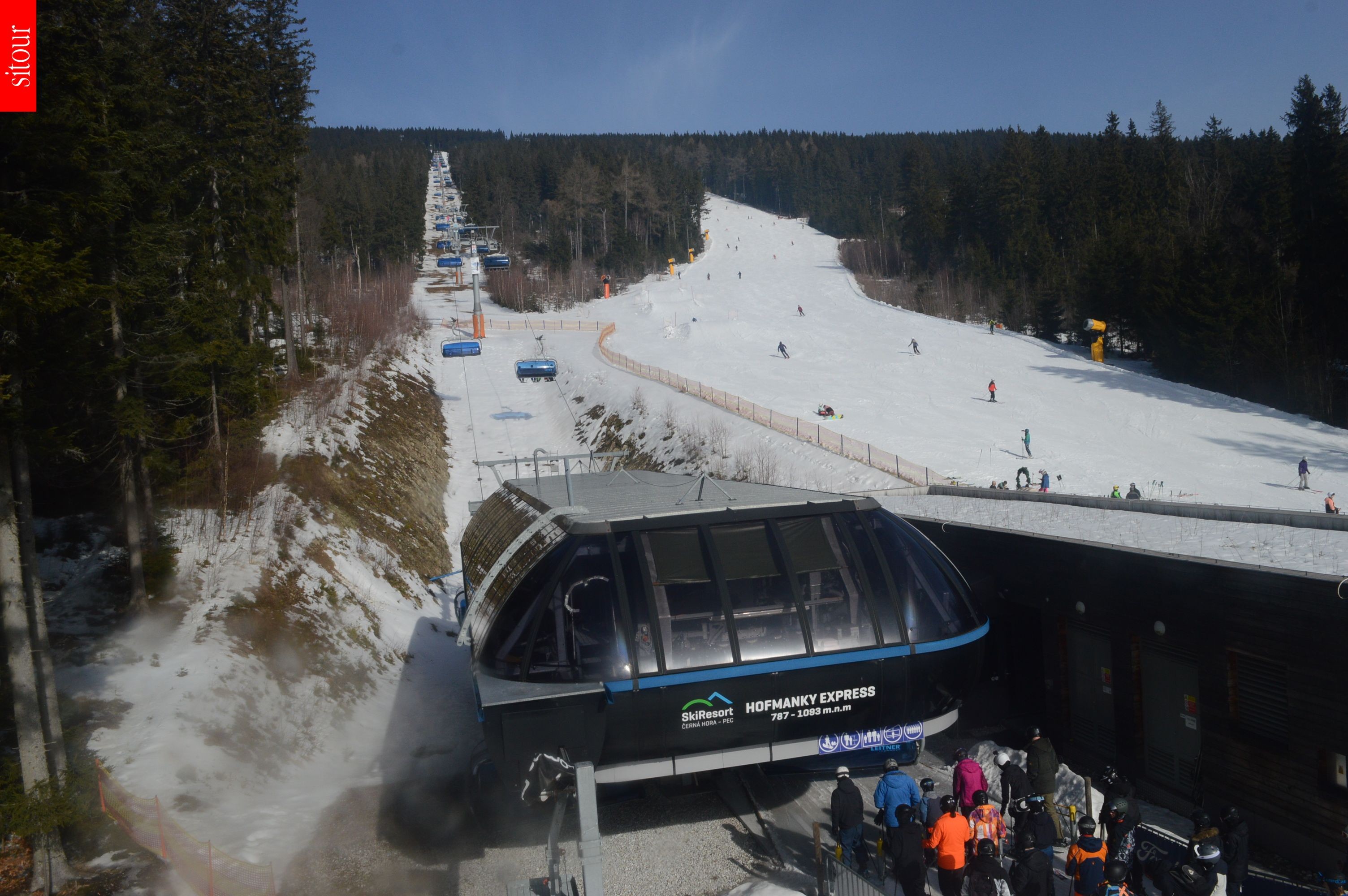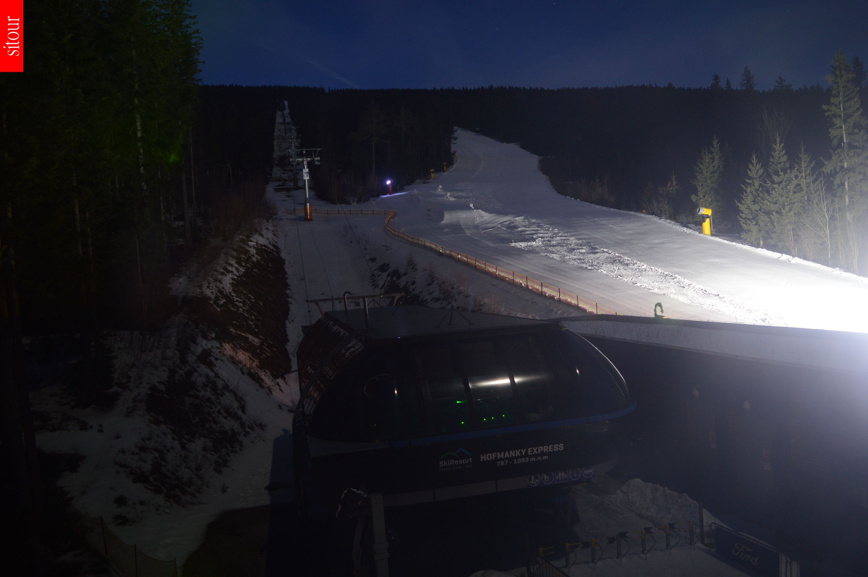 Webcam shows the chairlift Hofmanky Express at czech Ski Resort Cerna Hora.