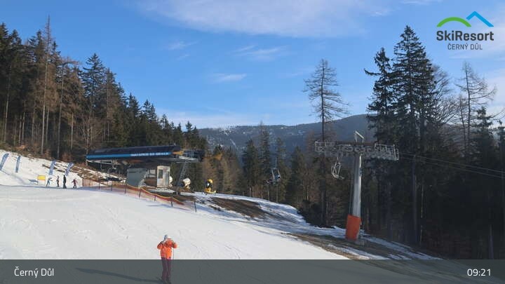 This webcam shows the Czech ski resort Cerny Dul which is located at the east of the Giant Mountains.
