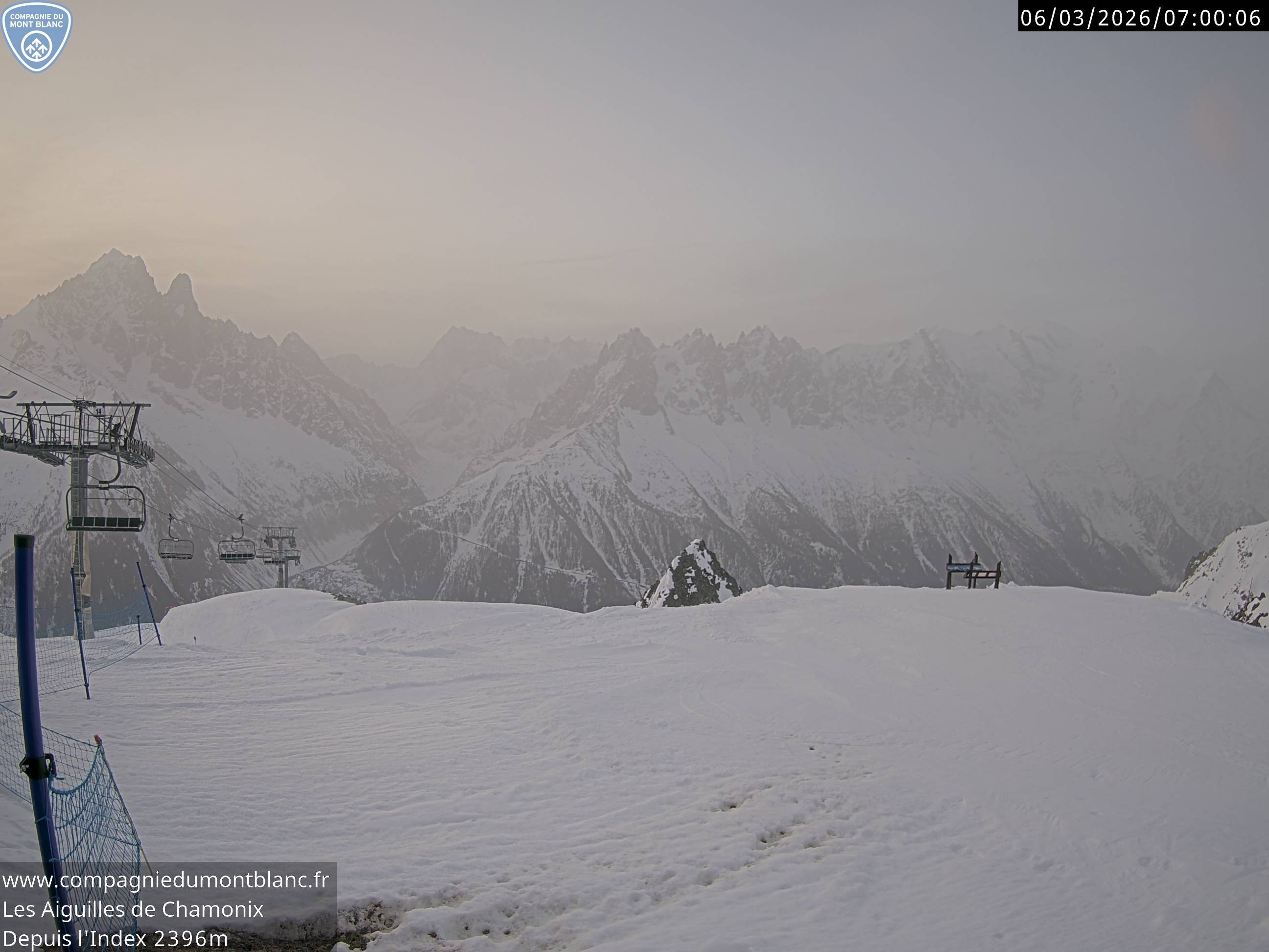 Archived webcam image showing La Flégère: Index chair lift on 6 Mar 2026 at 06:39 05:00