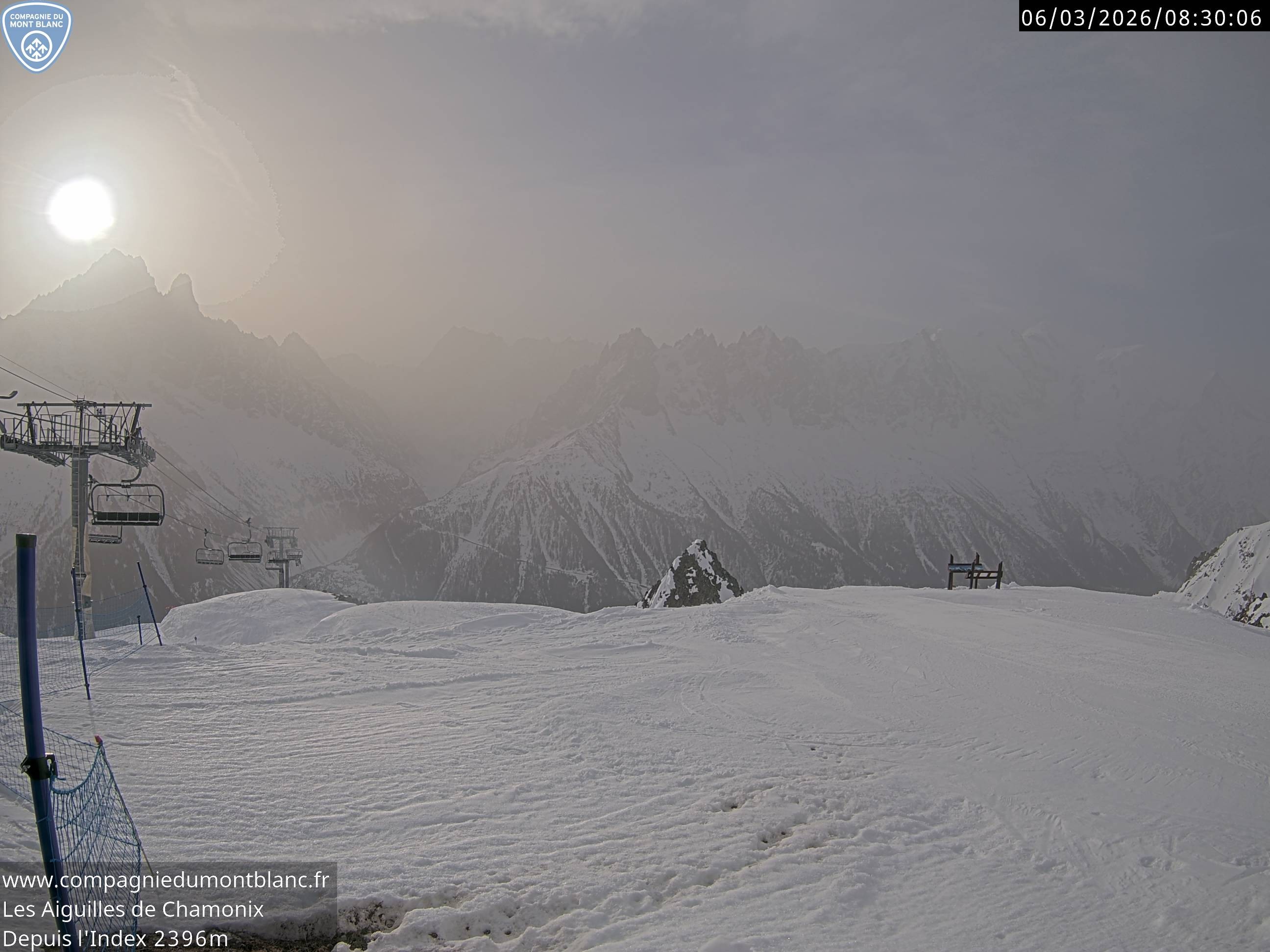 Archived webcam image showing La Flégère: Index chair lift on 6 Mar 2026 at 08:39 07:00