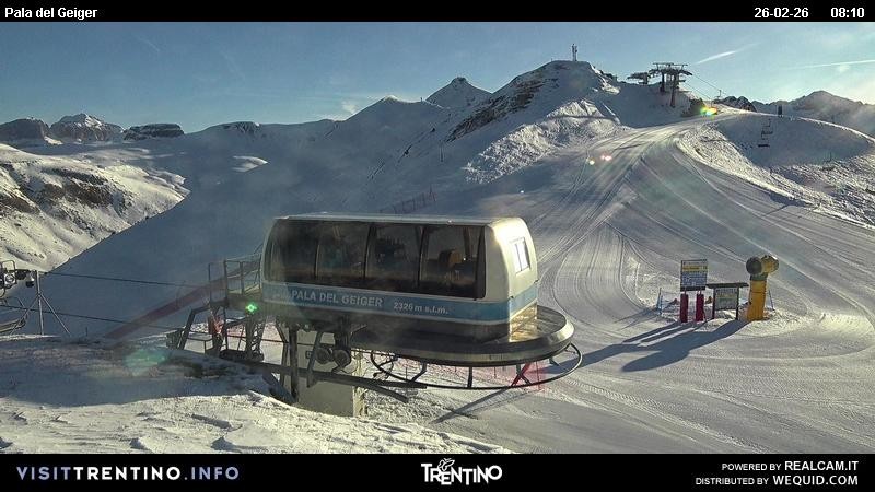 Archived webcam image showing Top Station Pala del Geiger on 26 Feb 2026 at 08:36 07:00