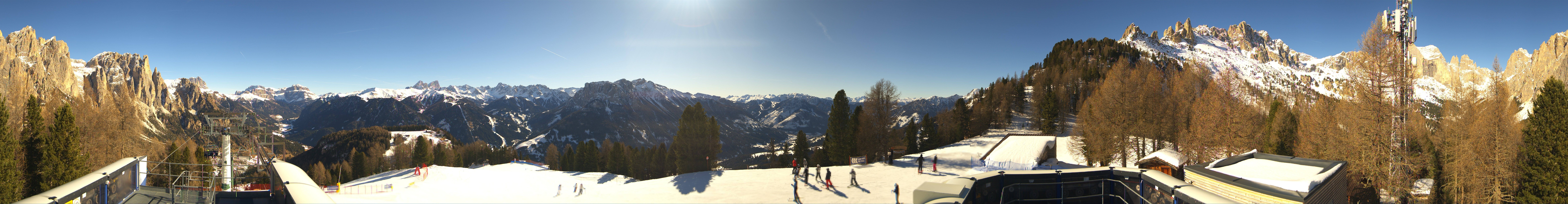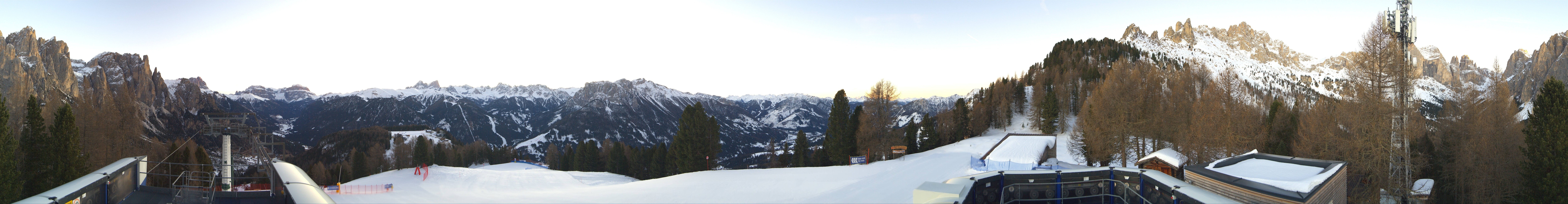 This webcam is located at the top station of the Pian Pecei-Pra Martin lift in the Fassa Valley ski resort. You have a great view of the Rosengarten group.