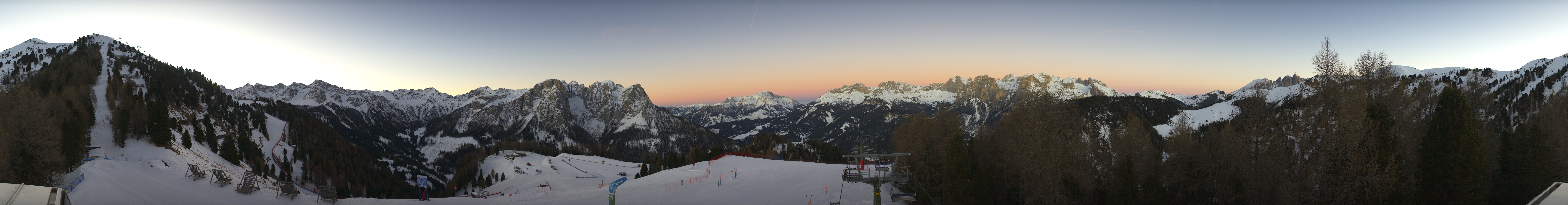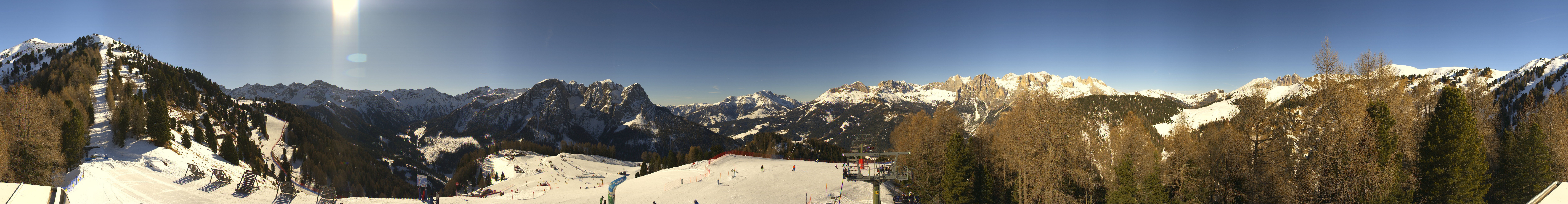 This webcam gives you a stunning Panoramic view of the Dolomites surrounding the ski resort Pozza di Fassa. You can see the Buffaure ski lift going into the Fassa Valley.