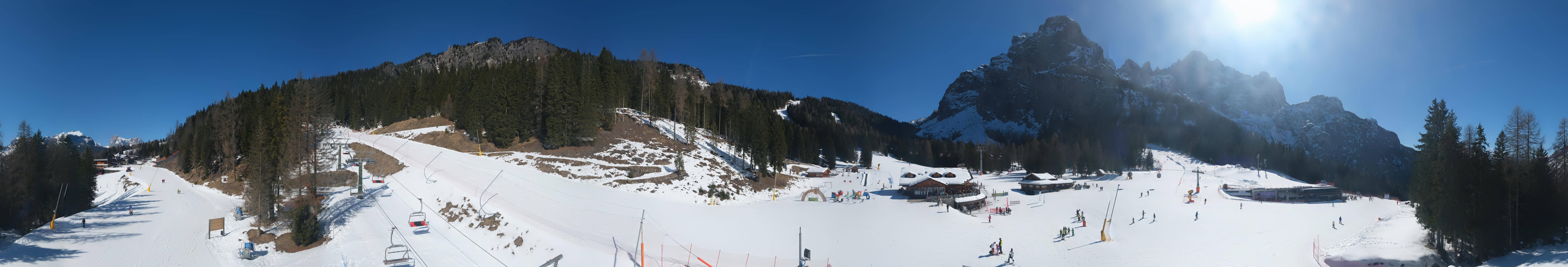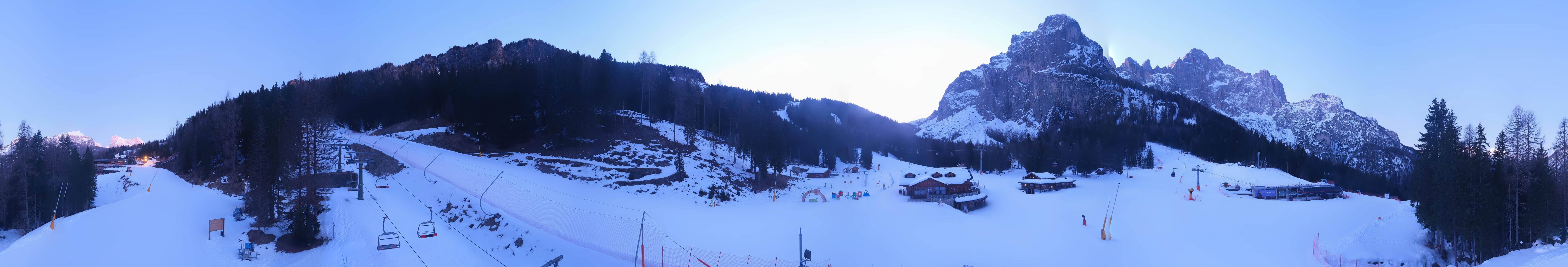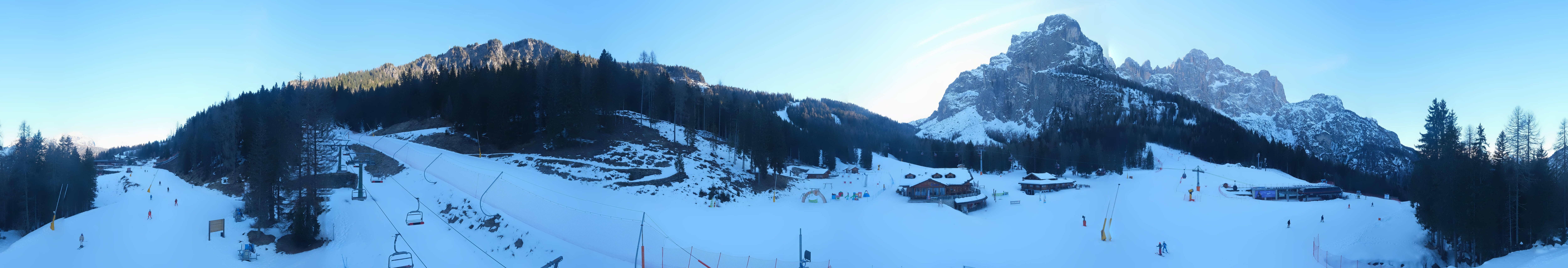 The webcam is located at Civetta ski resort in Alleghe. It shows images of the Piani di Pezze, the entrance to the resort.