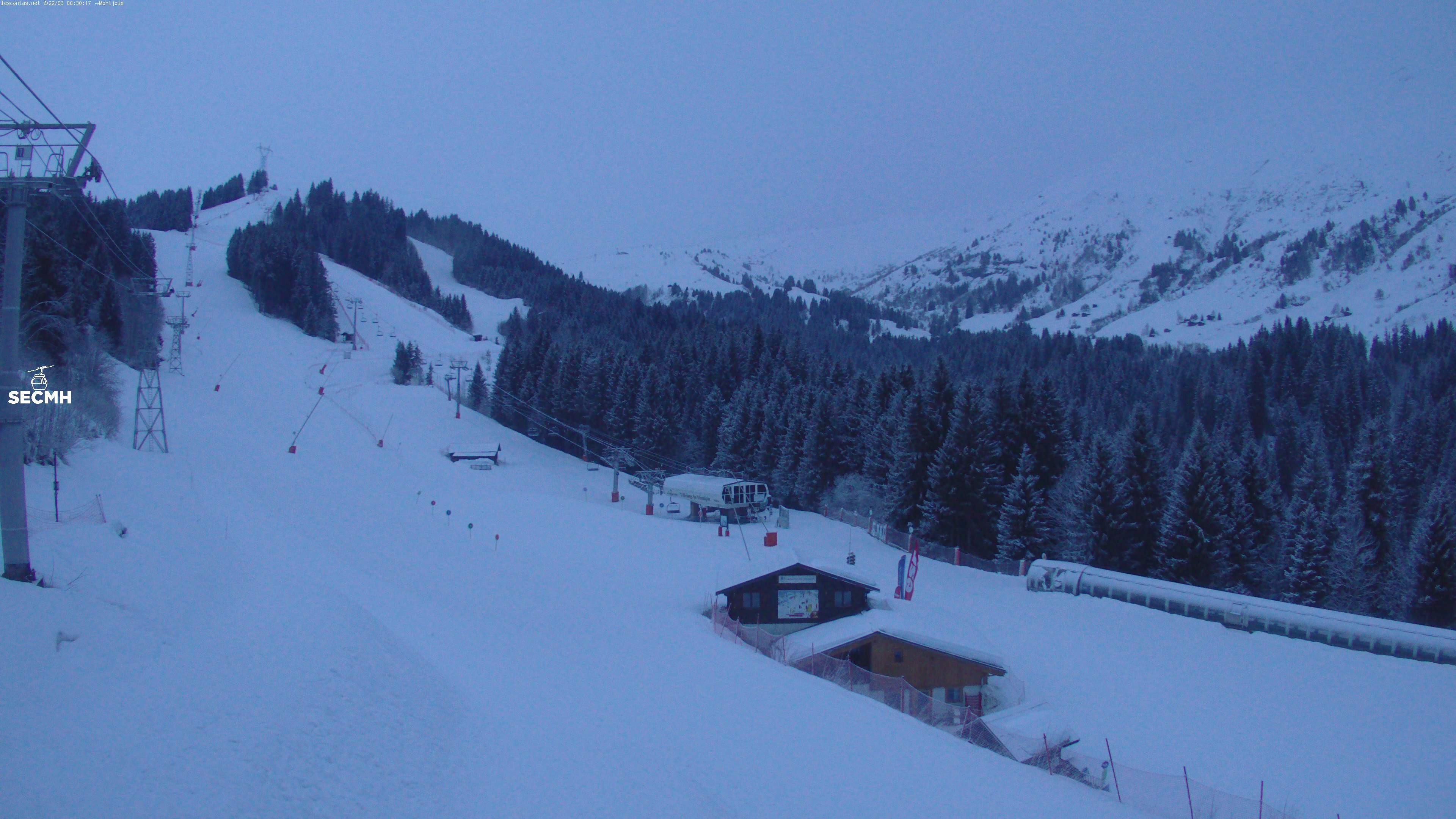 Live Pictures of Les Contamines Montjoie Ski Lift and mountain Restaurant.