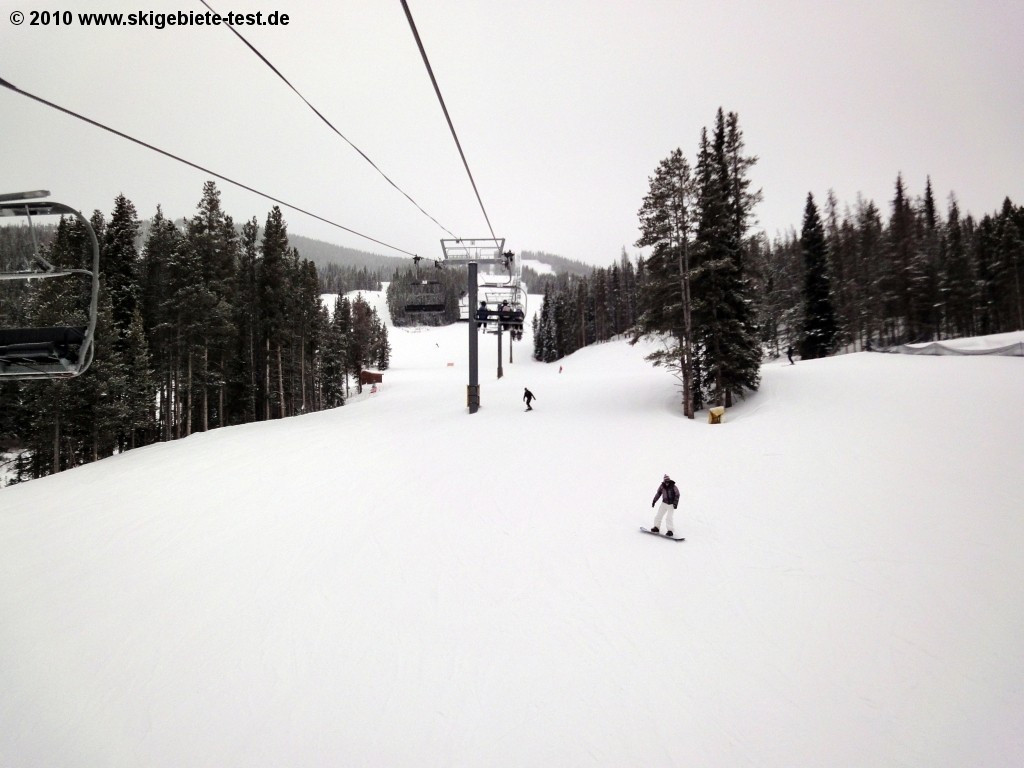 Snowboarders who like spending the day practicing their newest tricks and jumps in the terrain park are going to love Copper Mountain. There are five terrain parks spread out on the mountain. Directly above Center Village, at the base terminal of the American Eagle lift, snowboarders show off their courageous leaps on a gigantic superpipe while wide-eyed guests at Jack’s Bar look on. The largest of the five terrain parks is the Catalyst Terrain Park, which can be reached from High Point. Here, kickers the size of houses await freestylers brave enough to mount them. Those not yet up to the challenge will be better served by the smaller Jibberish, High Point (both also located on High Point) or Eagle Jib parks (Eagle Jib can be found at the upper terminal of the American Eagle lift). The child-friendly „Kidz Terrain Park“ located between the upper terminals of American Flyer and Timberline Express is the icing on the cake and helps guarantee that even the air&style offspring will have a thoroughly enjoyable experience. Since the trail selection is great for every level of ability, and freeriders will be just as satisfied with the off-piste experience, Copper Mountain receives a well-deserved 5 out of 5 stars in the category for Snowboarders.
