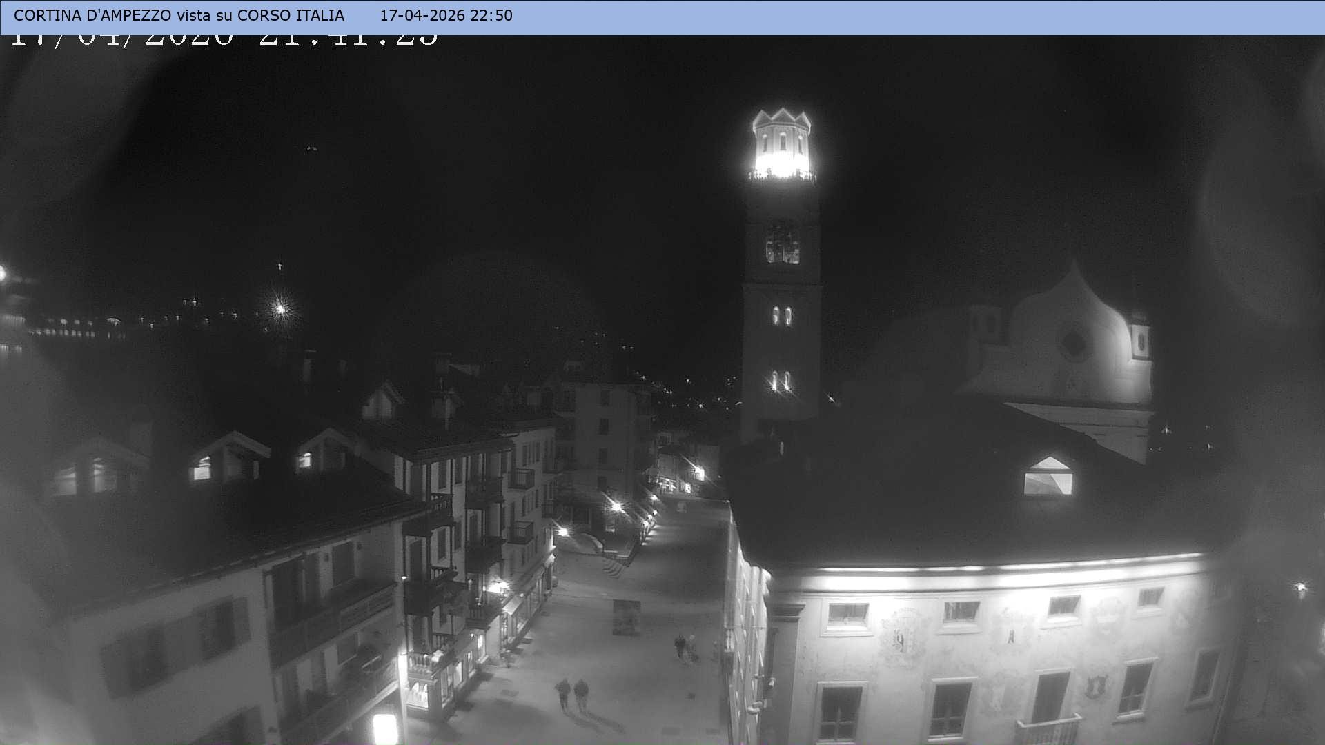 Archived webcam image showing Cortina d'Ampezzo: Pedestrian zone on 18 Apr 2026 at 00:13 23:00