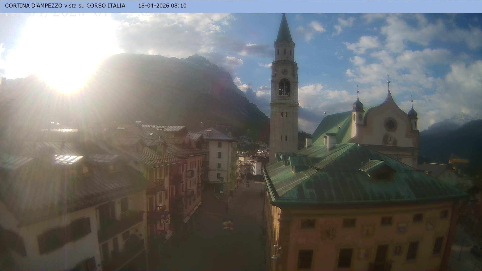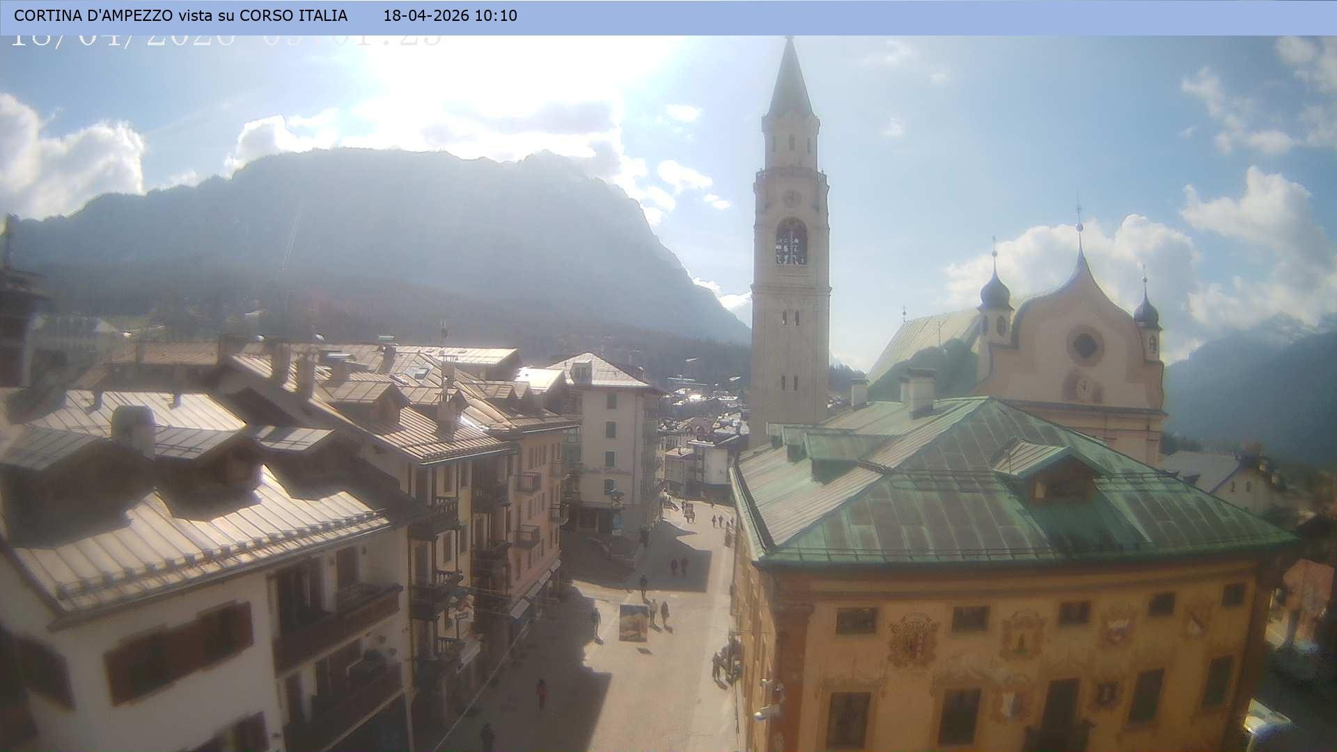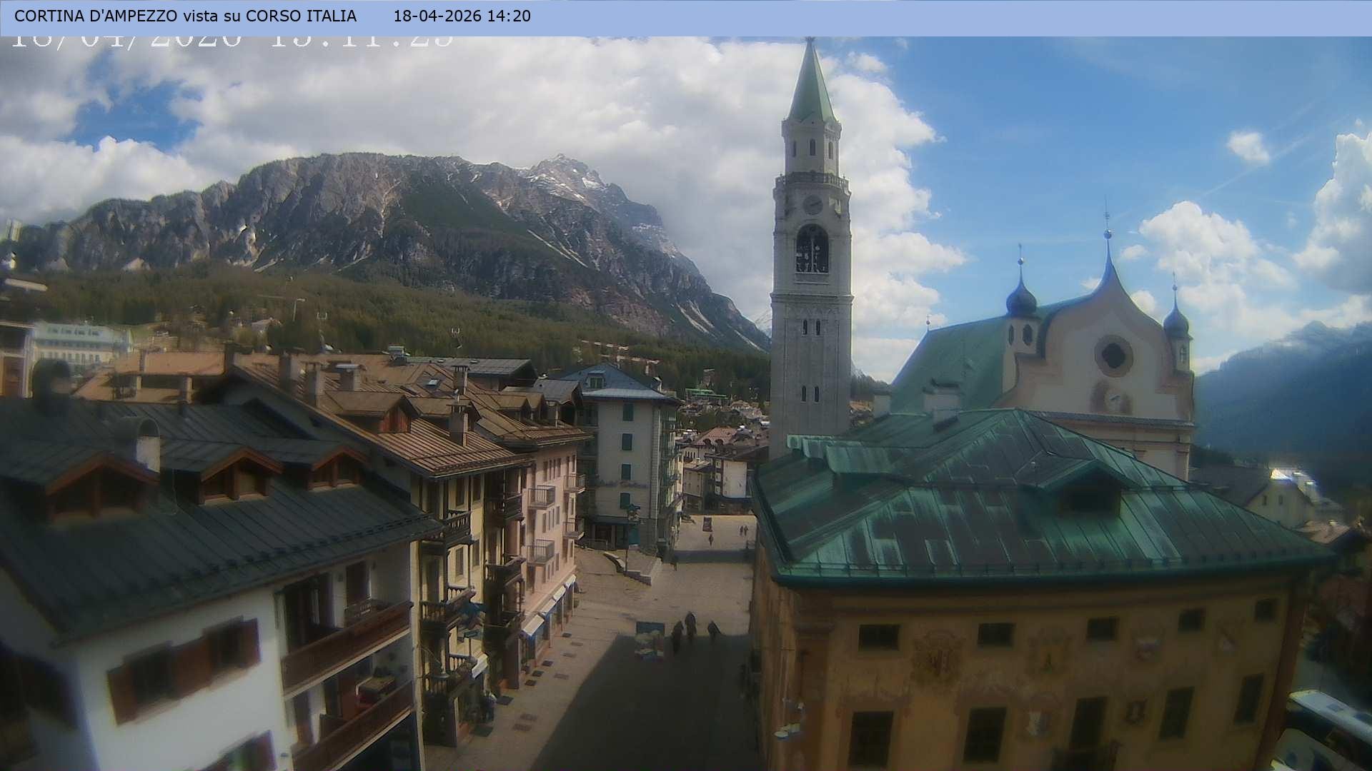 Archived webcam image showing Cortina d'Ampezzo: Pedestrian zone on 18 Apr 2026 at 10:13 09:00