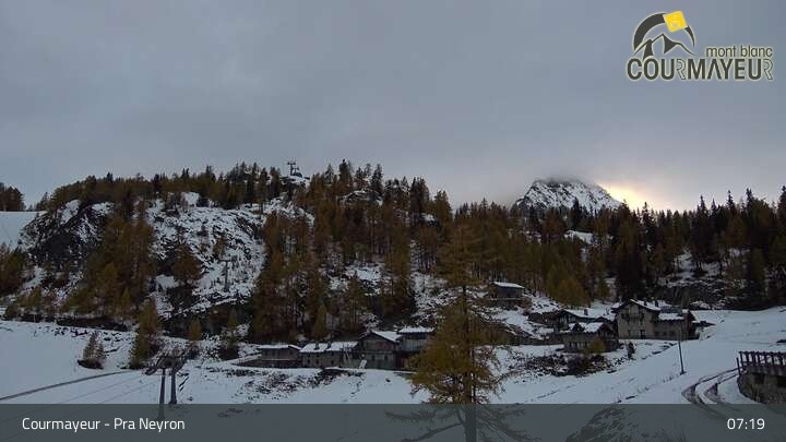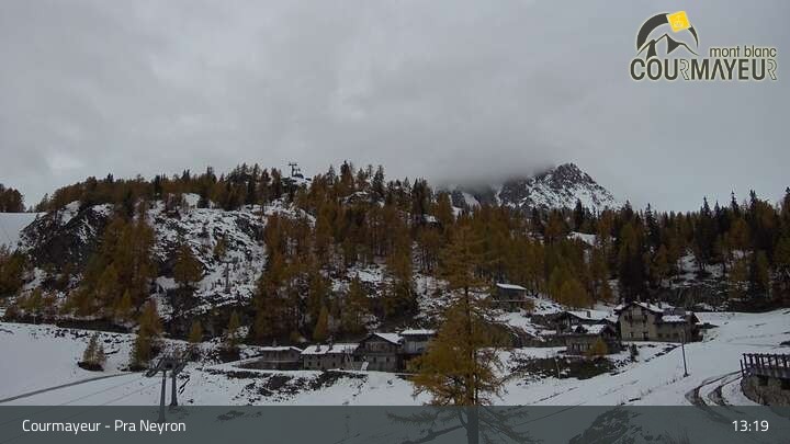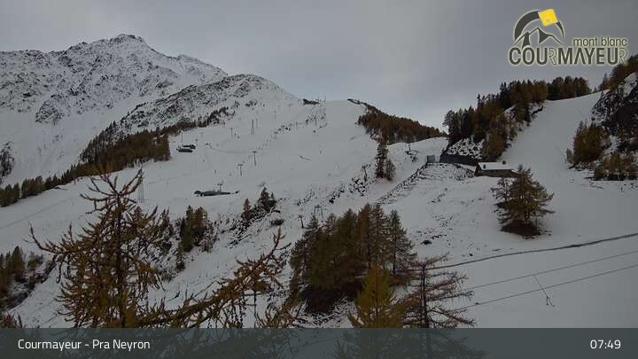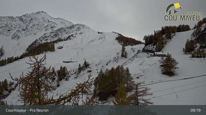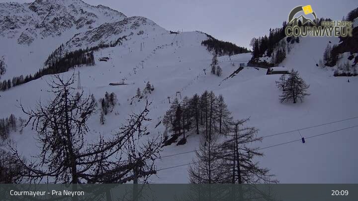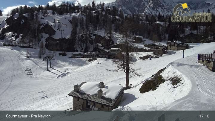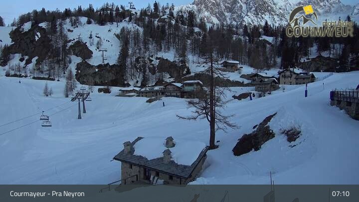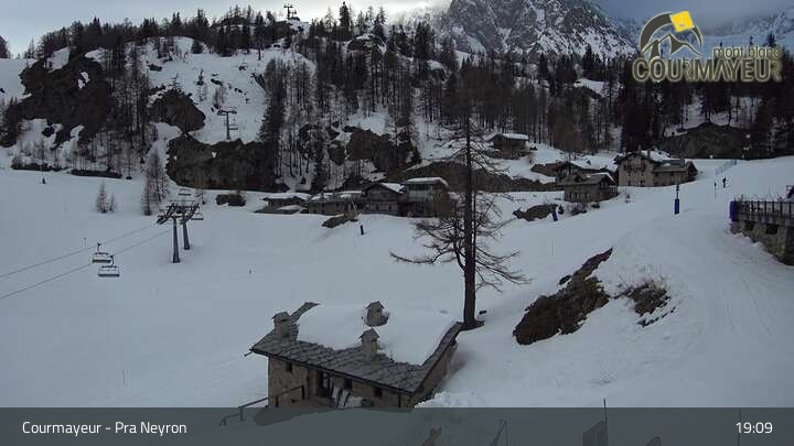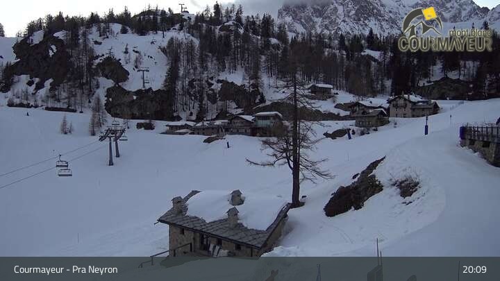 This webcam looks upon Pra Neyron chair lift at the Italian ski resort Courmayeur.
