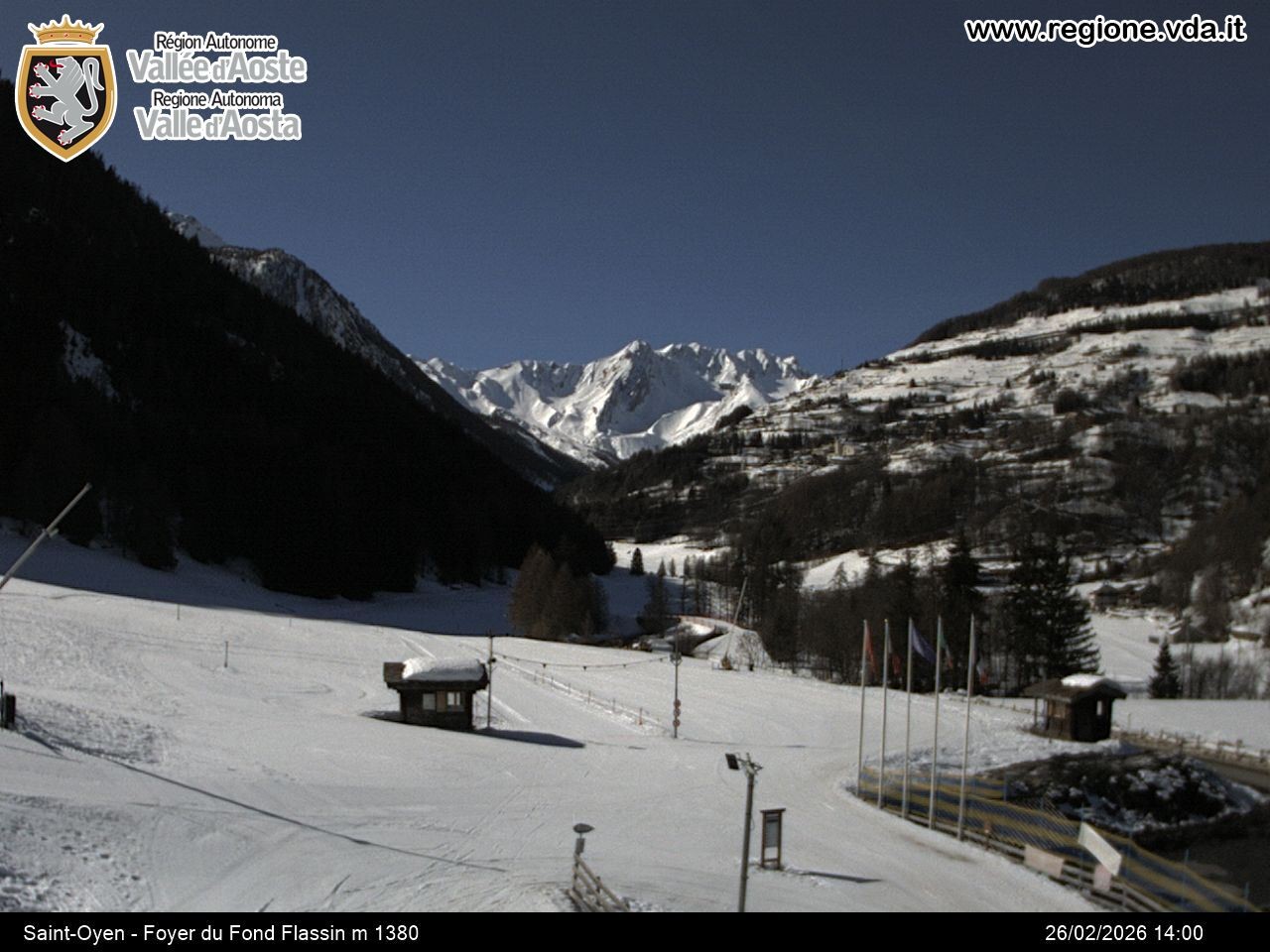 Archived webcam image showing Ski run Flassin on 26 Feb 2026 at 14:53 13:00