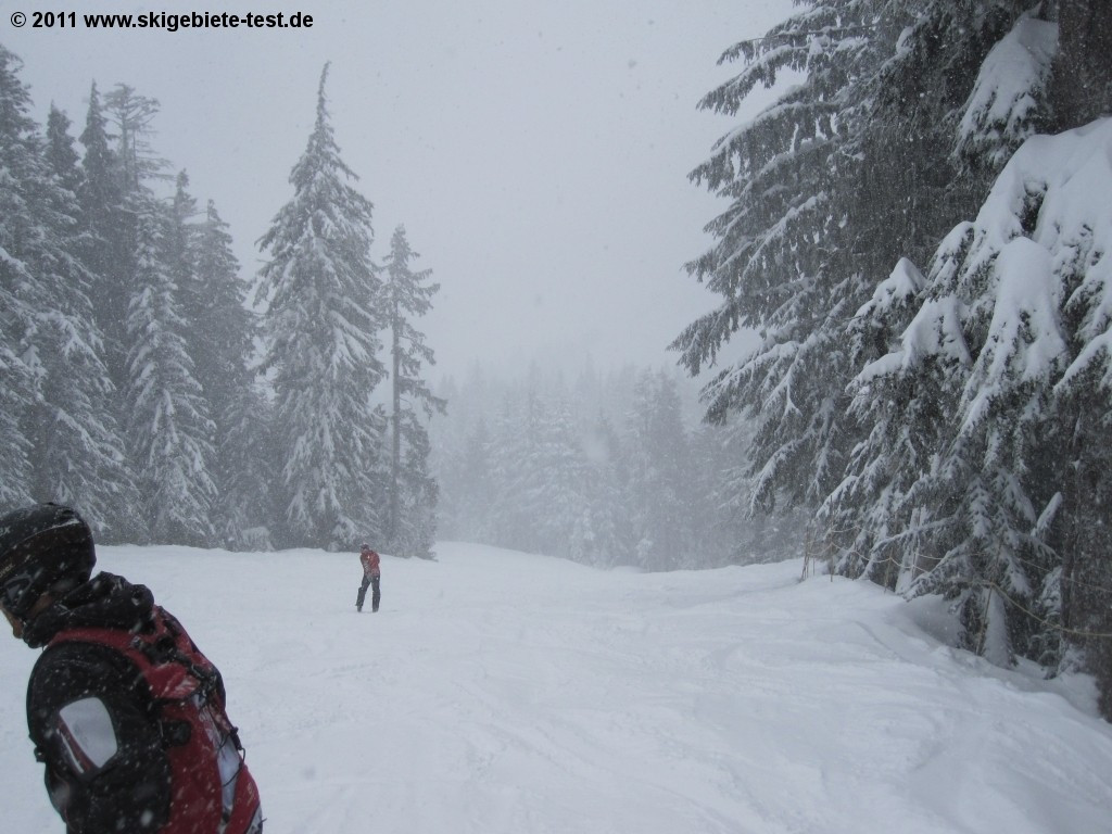 Intermediate skiers have a pretty good selection of trails at Cypress Mountain, with 35% of the total being blues. Our personal favorites were „Horizon” in Mt. Strachan and „Crazy Raven” and “Jasey Jay Anderson’s Gold” in Black Mountain. If you’re looking for more of a challenge and a bit more variety, you’ll find them in the black diamonds in the area. Most of them are ungroomed and are everywhere to be found at Cypress Mountain. Many of them are also very short, so more ambitious intermediate skiers should be able to handle them. Another challenge can be found in the “Rainbow” trail next to the Lions Express Quad Chair. You’re also going to love Cypress Mountain’s location right off the coast of the Pacific Ocean. Weather allowing, skiers can enjoy the breathtaking view of it as well as of the city of Vancouver.