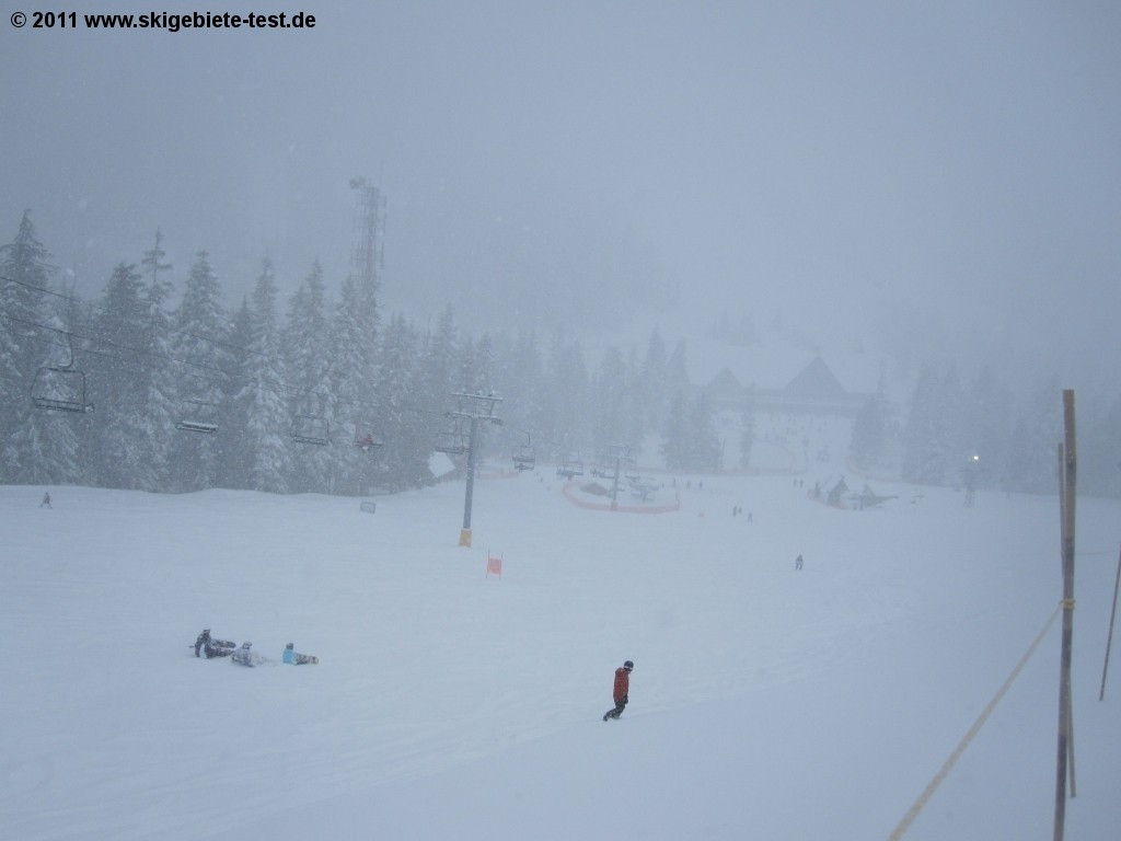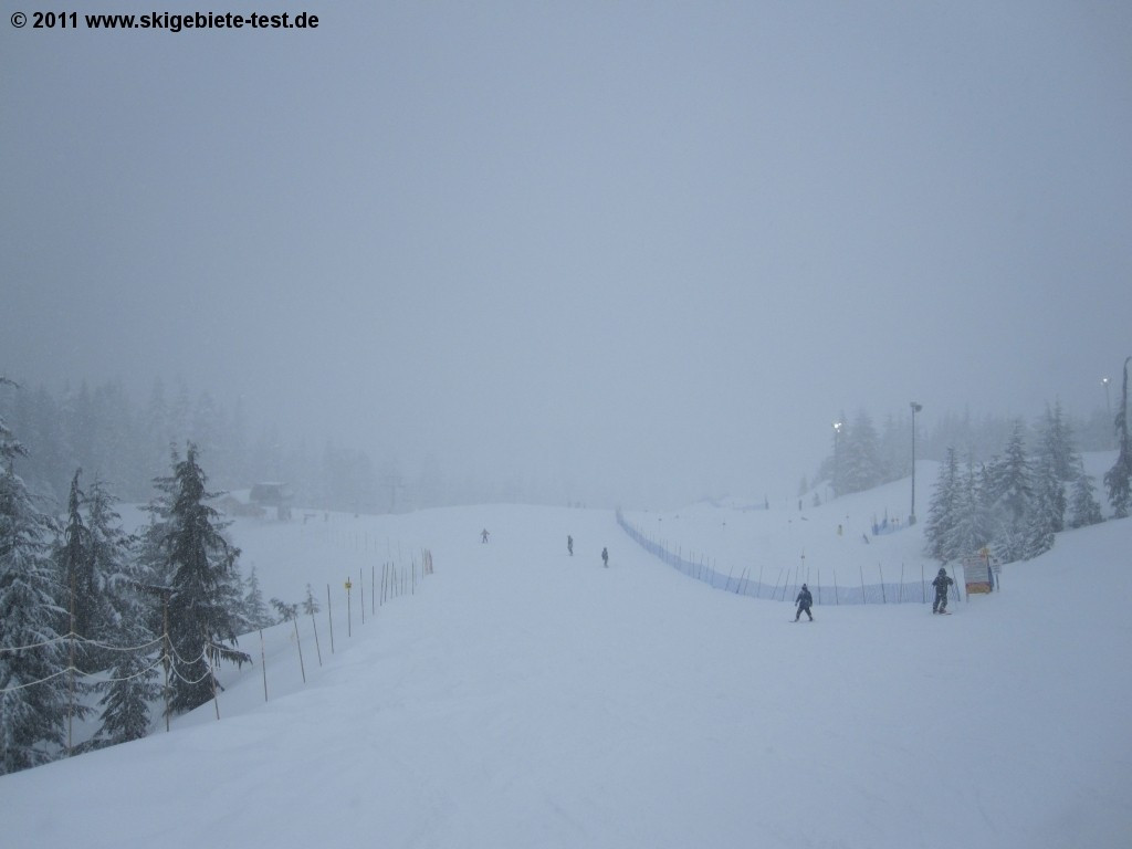 Thanks to all green (easy) slopes being flood-lit until 10 o’clock at night, beginners also have the opportunity to hit the slopes after dark. The magic carpet lift directly at the base and the trail “Runway” off the “Easy Rider” lift create very accommodating learning conditions for the less-experienced. A barrier also separates “Runway” from the rest of the ski area, allowing beginners a chance to practice in peace. Another major advantage of learning at Cypress Mountain is its set-up, which makes gradual advancement possible. If “Runway” starts to become a bore, you can just move right over to the Midway chair lift, which will take you up to the more challenging “Shuttle” and the lower portion of “Collins.” Once you’ve had enough of those, you can take the Lions Express Quad Chair and challenge the entire “Collins” trail. Over in the Black Mountain area of the resort are the two easy trails “Panorama” and “Windjammer.” And if all the greens start getting a little too easy for you, you shouldn’t have a problem with some of the intermediates. We recommend the blue (intermediate) trail “Horizon” in the Mt. Strachan area, as well as “Maelle Ricker’s Gold” in Black Mountain.